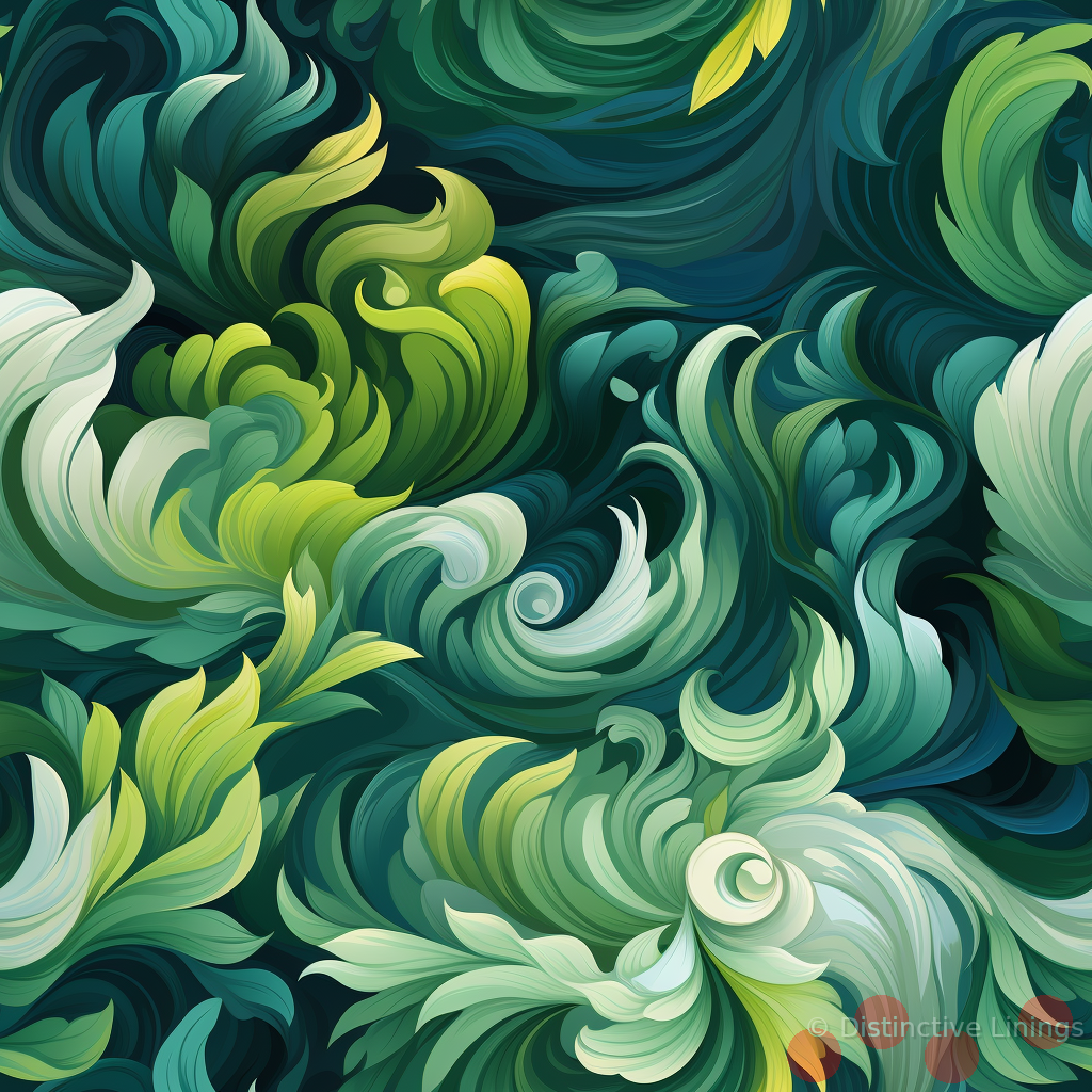 Immerse yourself in a world where style meets abstract expressionism with this unique jacket lining. The dominant hue, darkslategray, creates a captivating backdrop for the diverse tones of silver, mediumseagreen, darkseagreen, and cadetblue to artfully intermingle. The design nod to botanical motifs blends harmoniously with abstract flourishes, building upon the theme of modernity with a touch of nature's essence.