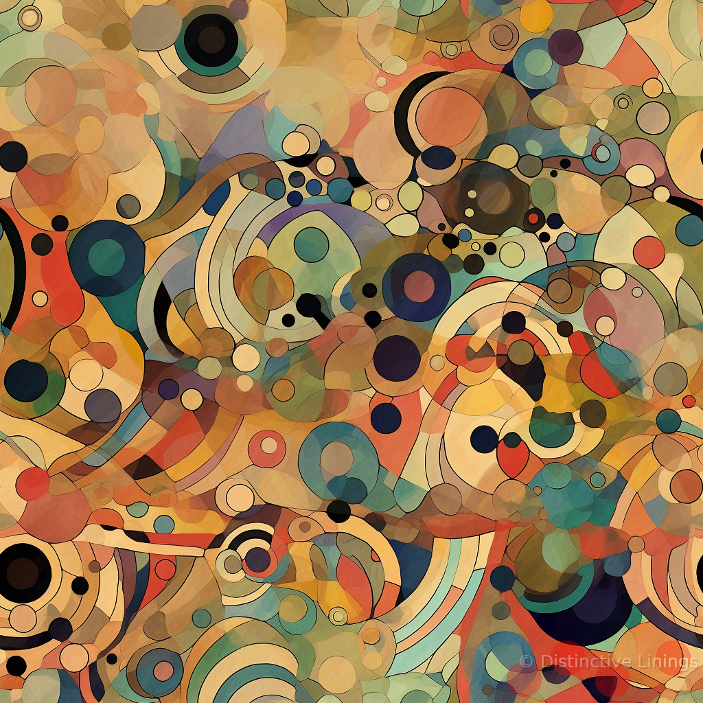 Immerse yourself in a world where fashion meets art, presenting an exclusive jacket lining crafted with a glorious amalgamation of abstract shapes. The distinct not-so-bright color palette composed of resplendent tones of Peru, the depth of Dark Slate Gray, the earthy kiss of Khaki, the rustic charm of Saddle Brown, and the subtle allure of Silver, weaves a story on its own. This unique lining is a homage to the enigmatic energy of abstract artistic expression.