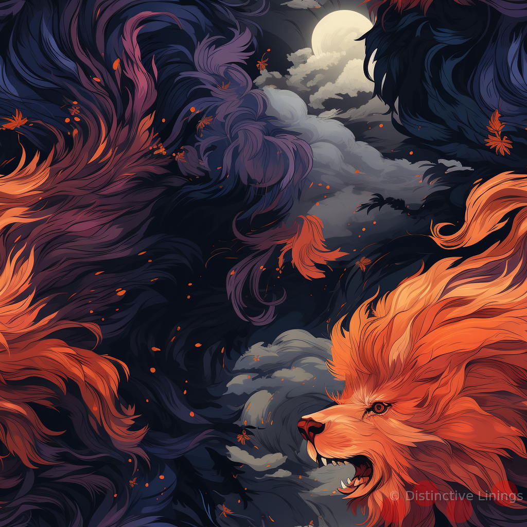 Unveil an aesthetic layer of sophistication to your custom-made jacket with our exclusive jacket lining. This design embodies contemporary abstract art at its best, rich in vibrant colors such darkslategray, indianred, dimgray, gray and lightslategray. The visually striking motif combines dynamic imagery of lions and birds in a brilliant palette of purple and burnt orange. The result? An intriguingly stylish pattern that is as much a conversation piece as it is a fashion statement. Immerse yourself in the world of abstract design and embrace the deep intensity of colors, adding a luxurious individuality to your jacket.
