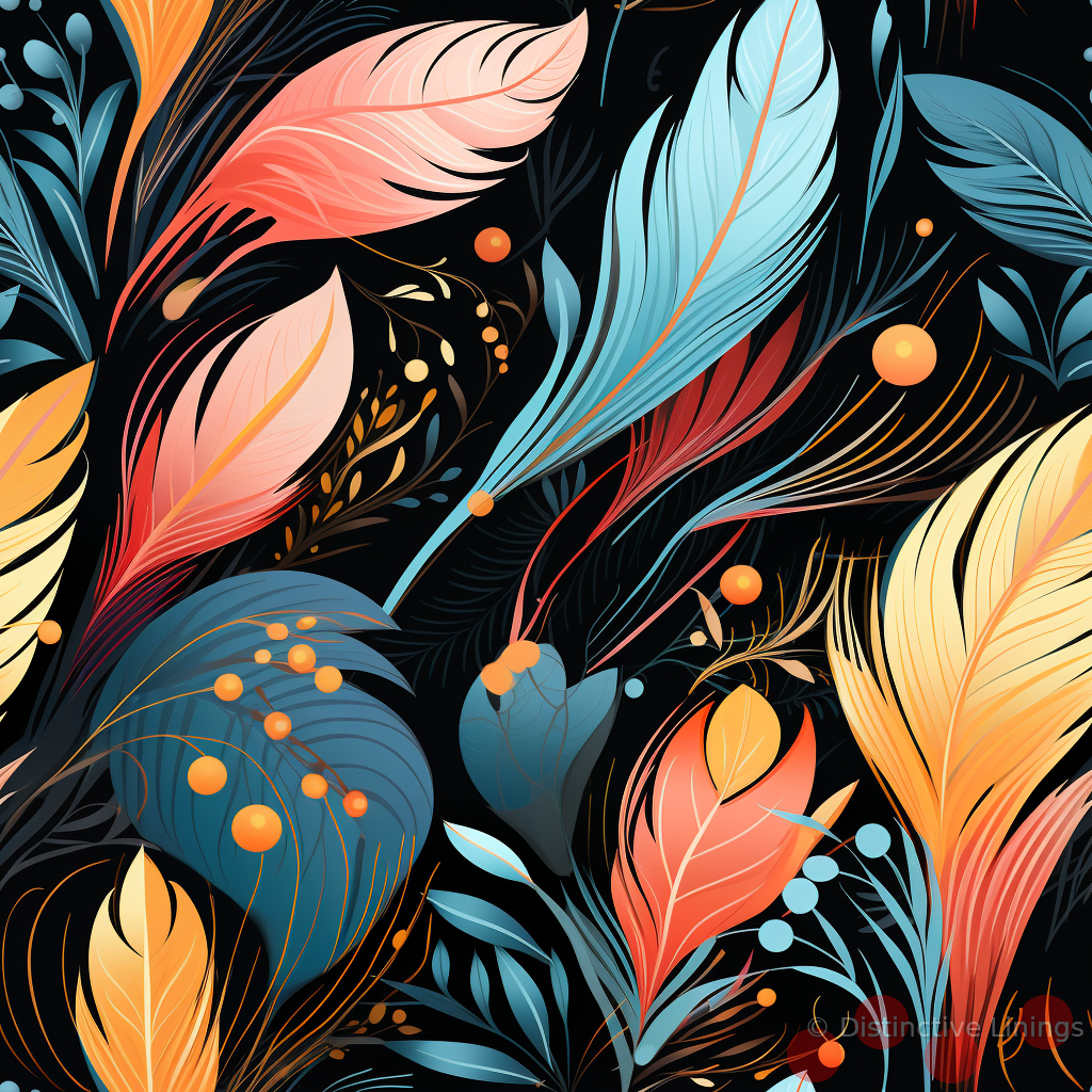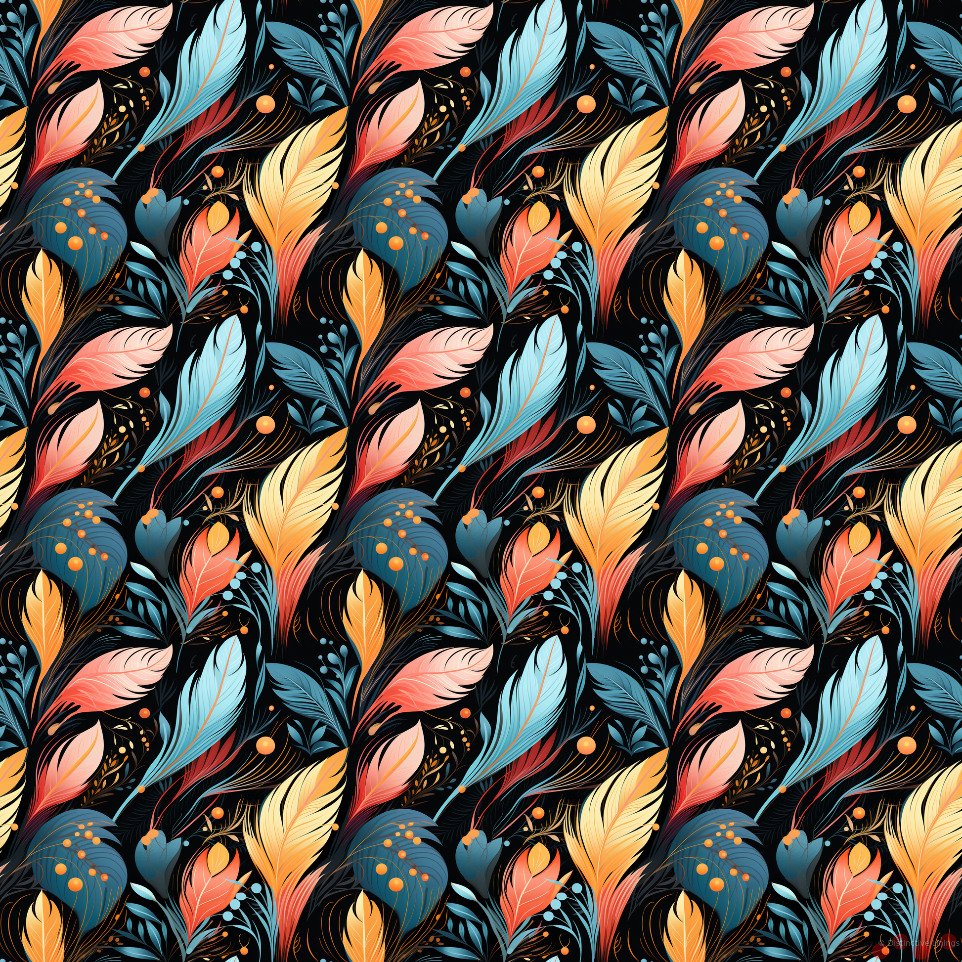 The primary base color, a strong black, is effortlessly enlivened by an enchanting blend of other hues. Burlywood imbues the pattern with earthy undertones, while the cadet blue and steel blue light up the darker backdrop, adding a stylish pop of cool tones to the picture.