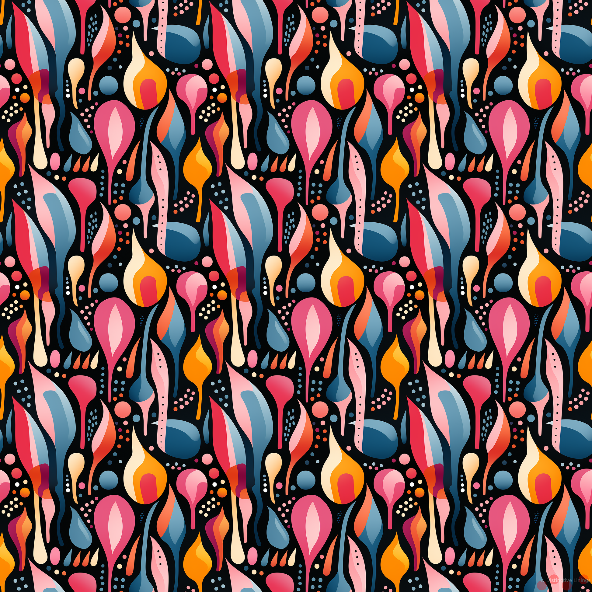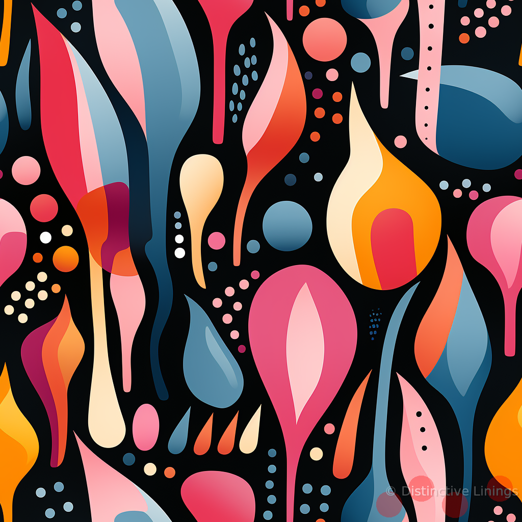 Amp up your jacket ensemble with our unique lining, a harmonious manifestation of abstract and forms design. Anchored in the tradition of patterns and forests imagery, this lining takes its inspiration from the charm of modern art sensibilities. The color palette is a rich blend of timeless hues, with powerful black as the base, enhanced by captivating nuances of dark salmon and cadet blue. Touches of vibrant crimson interspersed with calming steel blue tones add depth and intrigue to this exceptional design.