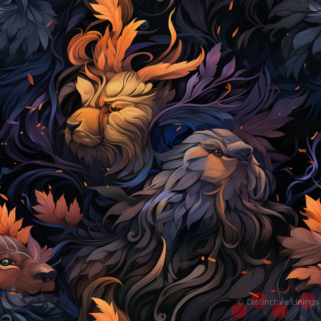 Immerse yourself in a divine world of visual artistry with our exclusive jacket lining. Revel in the marriage of abstract art traditions and contemporary fashion, translating into a ravishing display of lions and birds. >