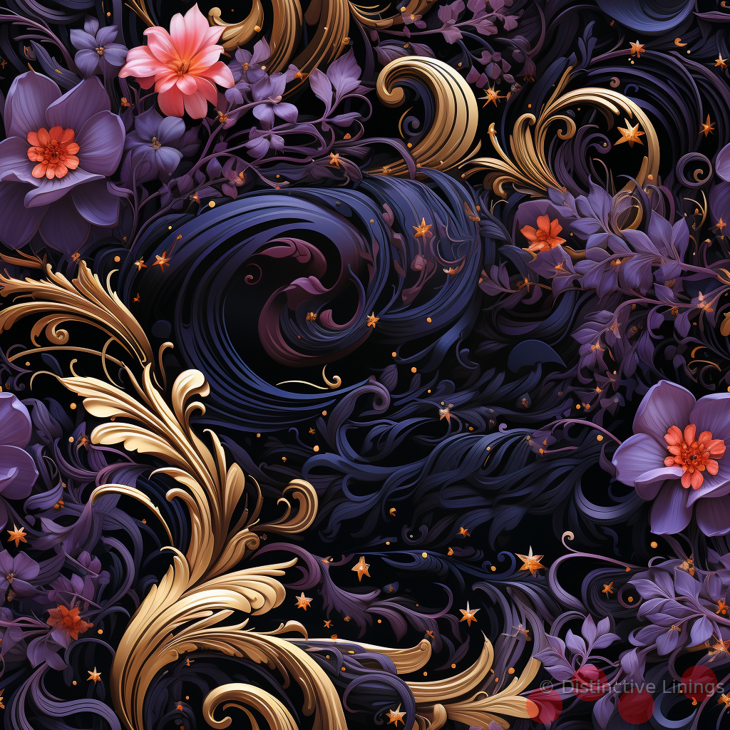 Experience the allure of Art Nouveau, infused in an artistic inner layer of your jacket. This refined lining showcases a wild west inspiration, seamlessly blending with the colors of black and dim gray to form a rich and enticing interpretation of an otherwise rugged theme. Amidst the dominating shades, elements of rosy brown peek through, adding warmth to the underlying grayscale depiction. Flecks of slate gray delicately litter the canvas reminiscent of a stony path against a dusky sky. And to usher in an element of surprise, a brush of medium purple artfully plays in the background, acting as a lively contrast. The design is filled with uniquely artistic forms that make this lining, not just a part of a jacket, but a lifestyle choice, ready to indulge your daily aesthetic cravings. Ideal for your personalized, made-to-measure jacket, this lining oozes individuality. The intriguing color scheme and iconic imagery effortlessly resonate with the vividity of an exclusive style.