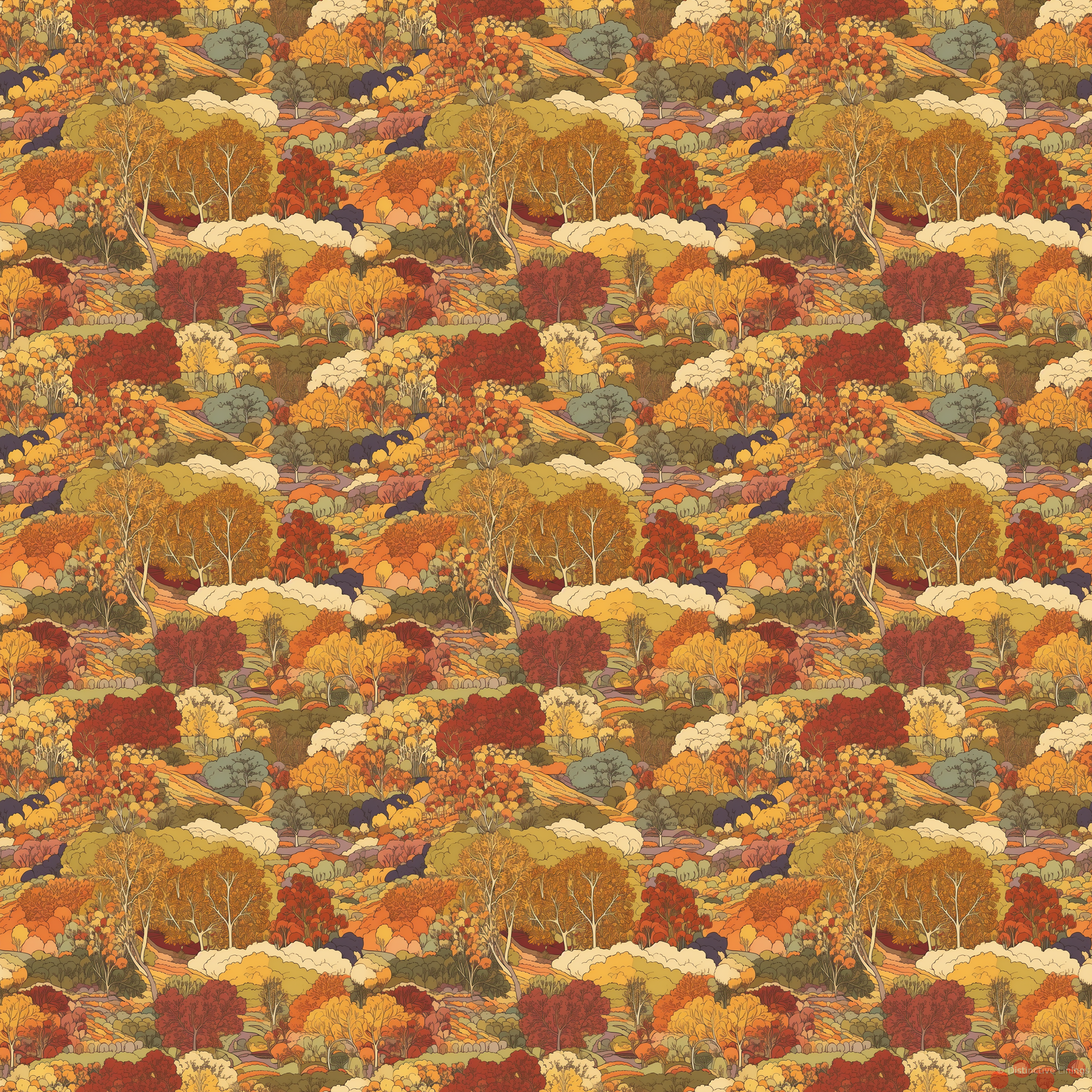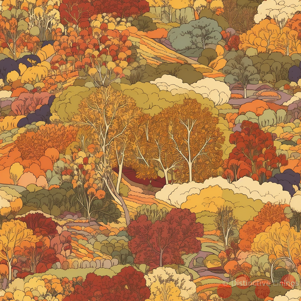 Experience the charm of autumn captured with true artistry, embodied in this exclusive jacket lining. Echoing the rich hues of an autumn forest, the beautiful blend of Peru, Khaki, Dark Olive Green, Saddle Brown, and Tan captures the warmth of the season.