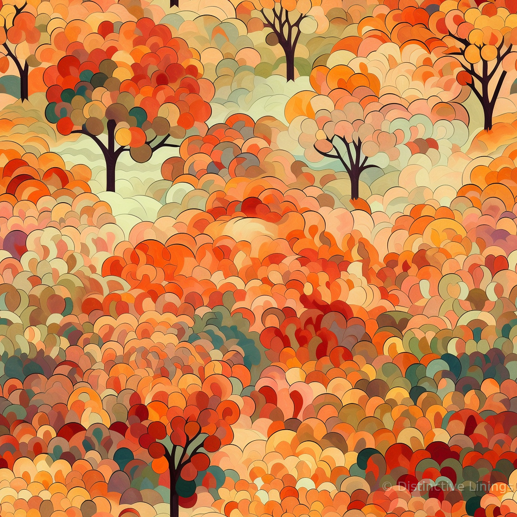 Step into the fall season in style with this exceptional jacket lining inspired by the distinctive pointillist art style. This unique design encapsulates the rustling charm of autumn, blending the earthy warmth of Peru, the mysterious depth of Dark Slate Gray, and the fiery boldness of Firebrick. Intricately woven in each detail, hues of comforting Khaki and soothing Pale Goldenrod whisper of an effortless transition from summer's vibrancy to winter's tranquility. This made-to-measure lining is more than just an accompaniment for your jacket, it's a statement—a confluence of art and fashion, personalizing your style with a stroke of exclusivity.