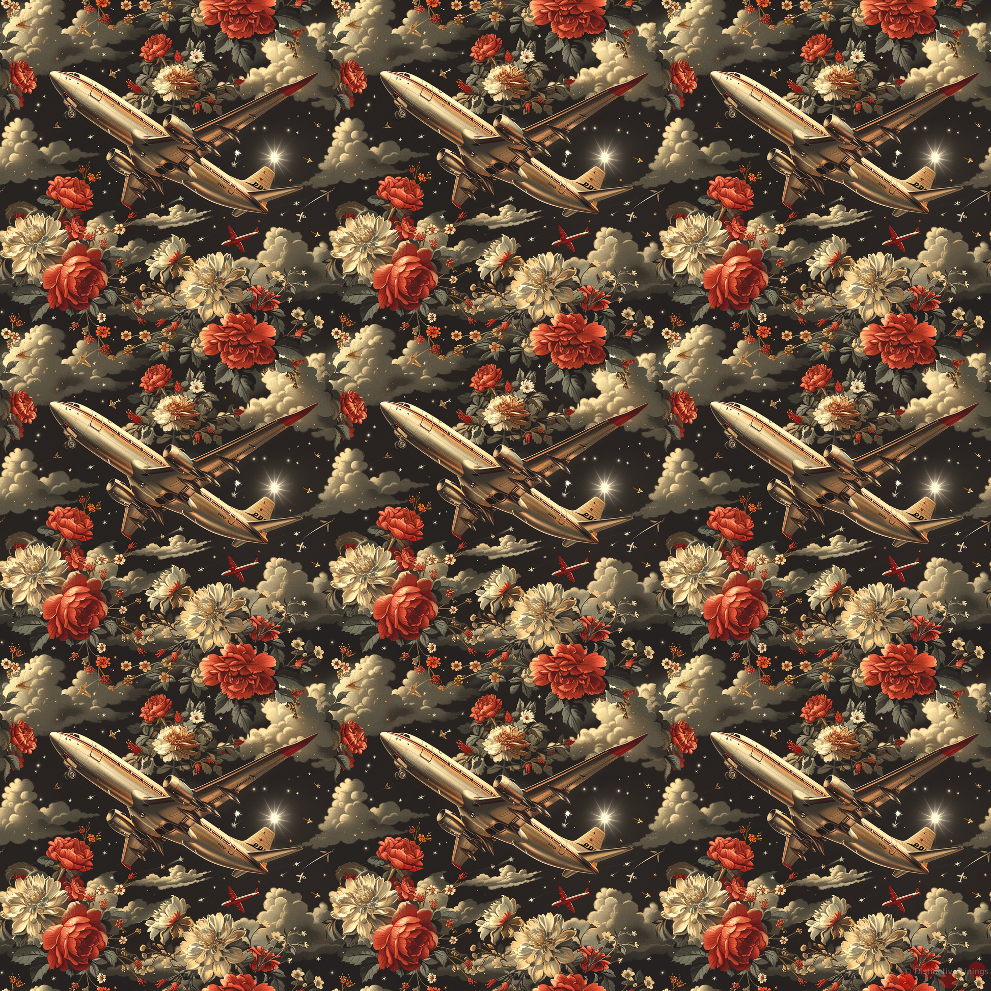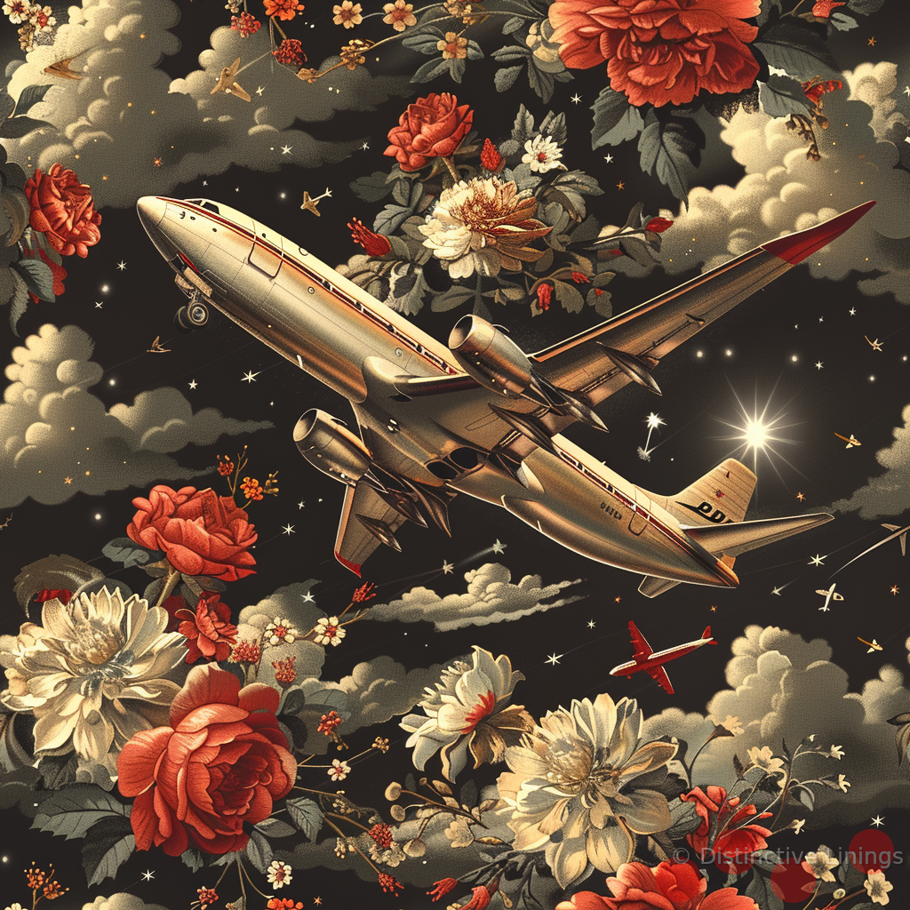 The intricate, aviation-inspired design sits in harmony on a dark rose and burgundy background, effortlessly composing an air of sophistication and individuality. Every detail of this lining exudes careful thought and precision, offering a style that echoes both the passion for flight and exquisite artistry.