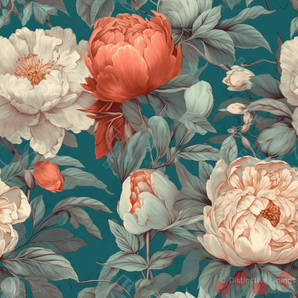Immerse yourself in the timeless elegance of our peony and bud jacket lining. Based on a Baroque style, this lining boasts a mesmerizing interplay of delicate flowers contrasted against an array of evocative hues. The blend of cool grayscale with hints of darkslategray lends a grounded feel while the accent of burlywood, saddlebrown, and sienna injects the charm of antiquity. The canvas is engulfed by bespoke peonies and buds, intricately rendered in an artistically invigorating fashion. A medley of intricate patterns and surprising details lend it a character that is both enduring and infinitely attractive. Luxury in a garment starts with what's inside, and this lining ensures any jacket tailored will exude splendor from the inside out.