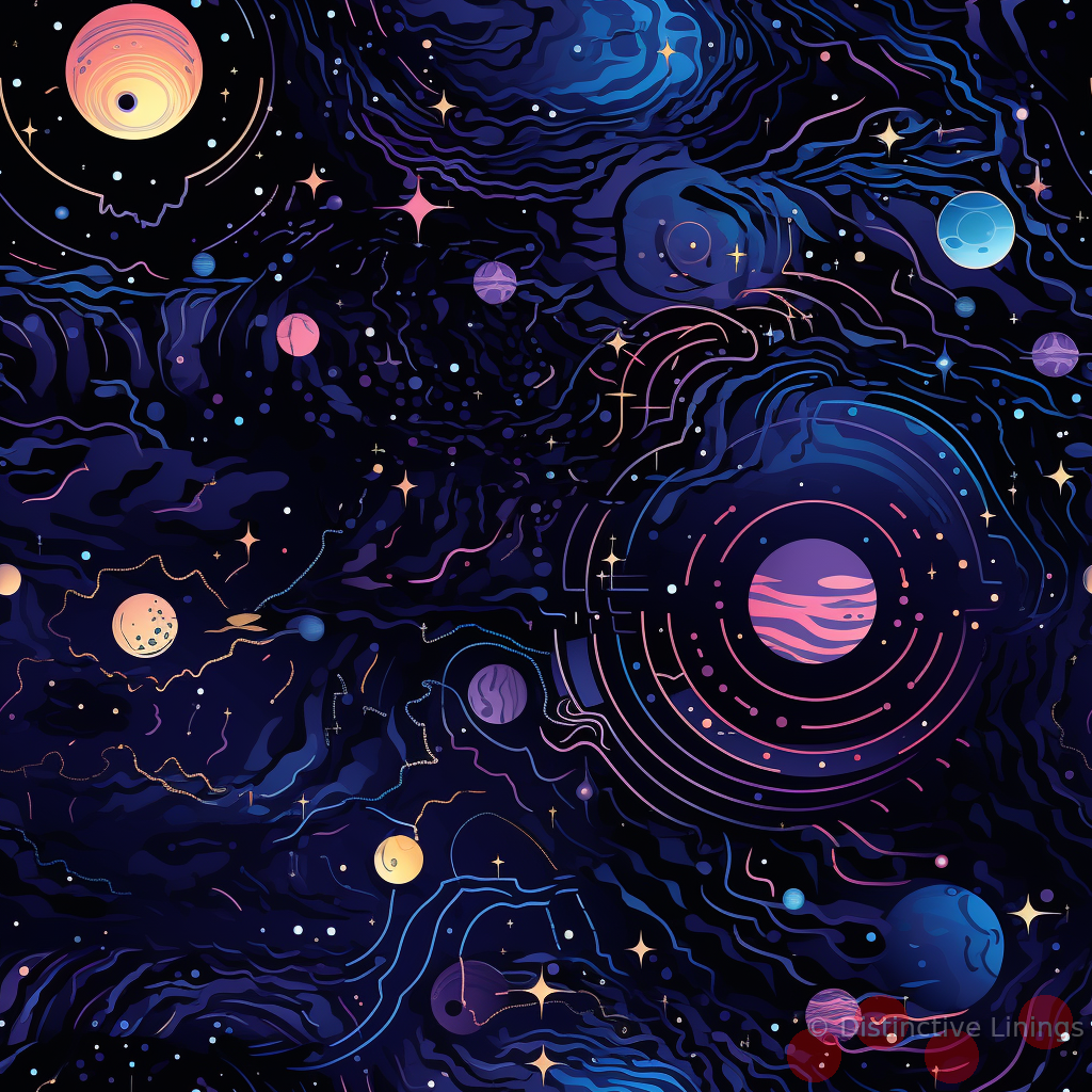 This sublime lining is meant for the bold, the artistic, and those who aren't afraid to wear a piece of the universe. Perfect for crafting the ultimate custom-made jacket, that tells an intriguing tale of a cosmic voyage, every time it is unveiled.