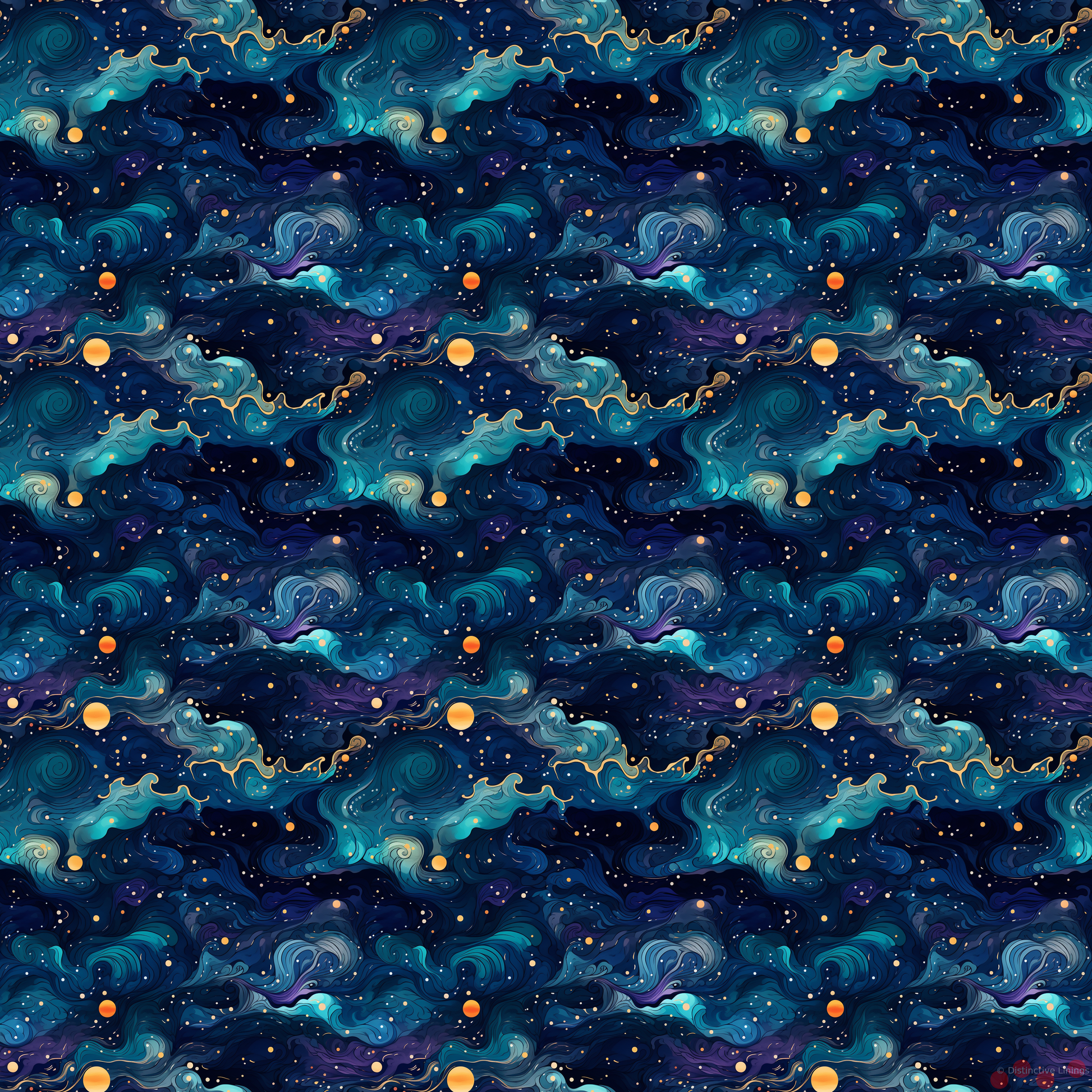 Highlights of tan intermingle throughout, providing a subtle contrast against the dominant dark tones. This balance is further complimented by streaks of cadet blue and mysterious teal, adding a deeper dimension to the overall design aesthetics. The effervescent combination of colors seems to tell a story of journey through the celestial.