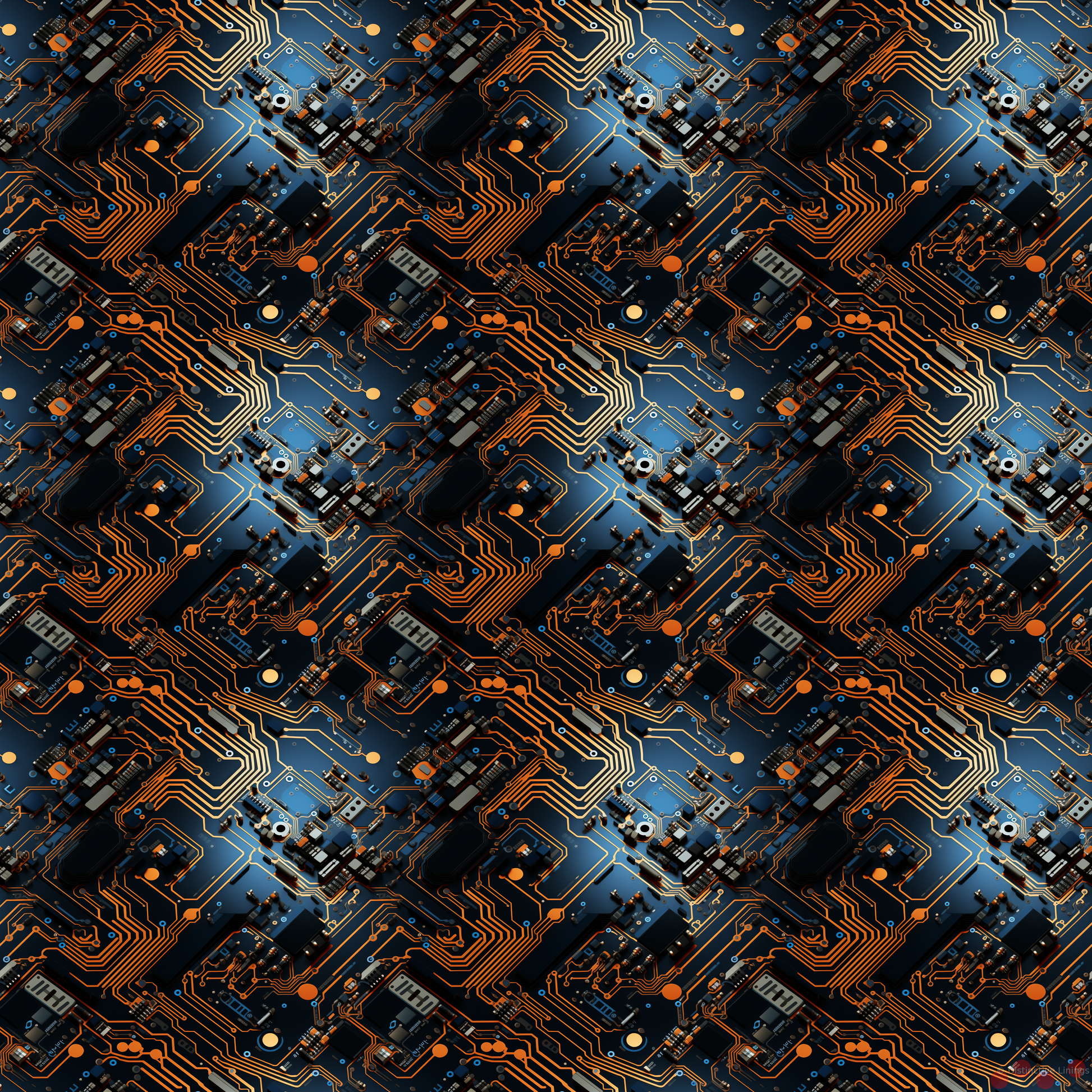 Lastly, nuances of steel blue appear intermittently. It plays a crucial role in achieving an almost metallic, electronic vibe - a nod to the circuit board inspiration.