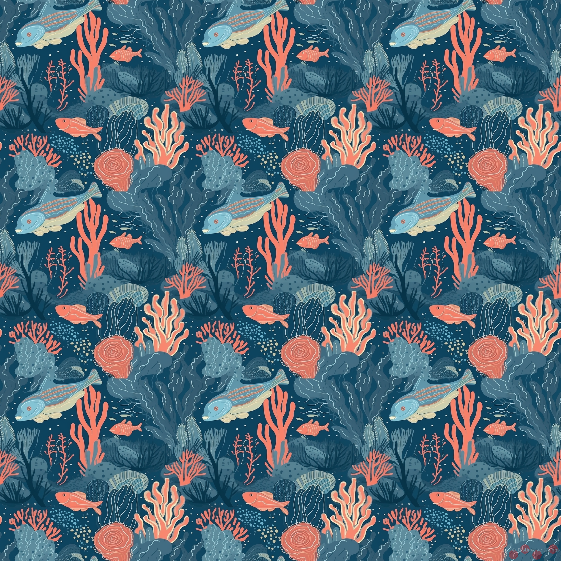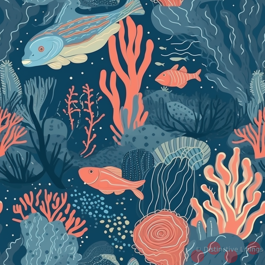 Embrace the exquisite panache of this marine-inspired jacket lining. The design captures the pure essence of the underwater scene with the vibrancy of coral reefs.