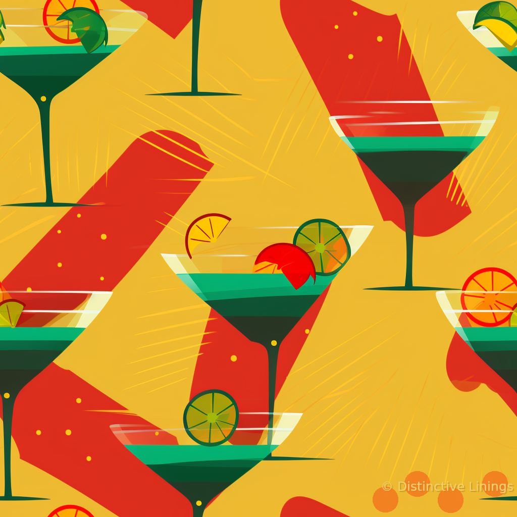Discover uniqueness in every detail with this extraordinary lining inspired by the abstract expressionist style. Highlighting a palette of rich tones that include goldenrod, darkslategray, crimson, wheat, and chocolate, the design intricately mimics the swirling pour of a cocktail with rum, sugar, and lemon.