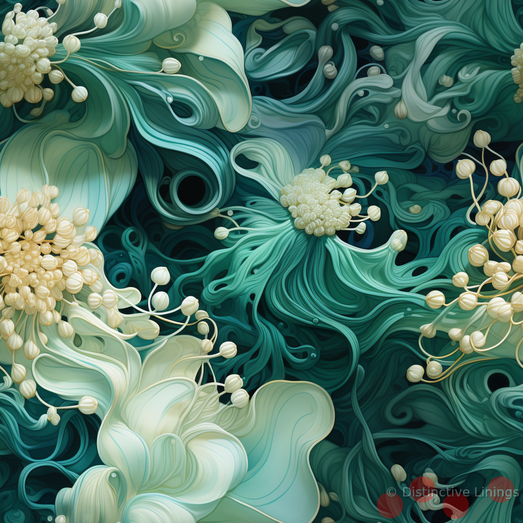 The holistic portrayal is highlighted further with subtle undertones of darkseagreen, slategray, and cadetblue, giving the lining a surreal, under-the-sea ambiance. These shades subtly intertwine to produce a fantastical scene that aims to captivate and intrigue.