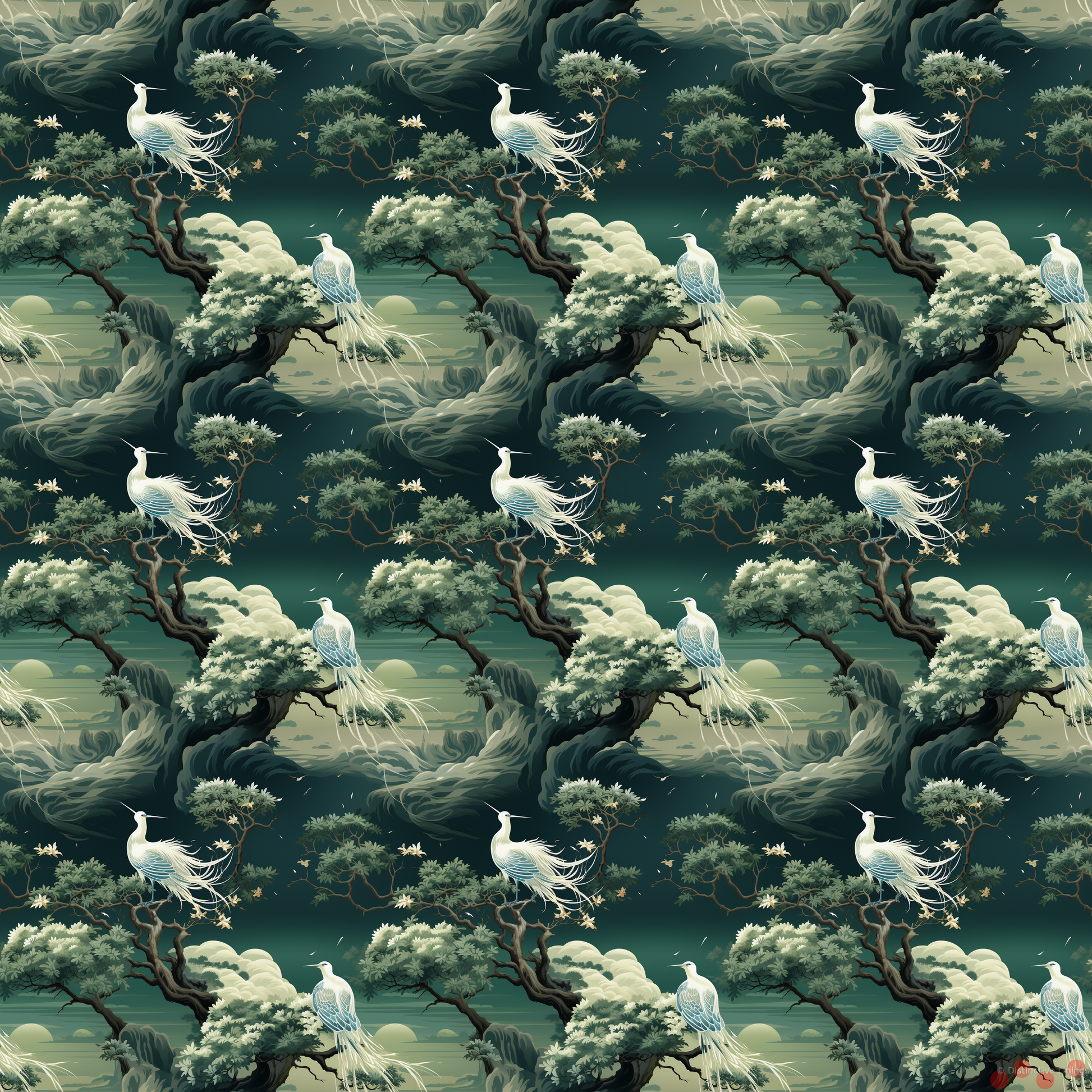 Immerse yourself in the inherent richness of our unique, made-to-measure jacket lining. Dominated by hues of darkslategray, silver, gray, darkseagreen, and cadetblue, it offers an intriguing interpretation of symbolist artwork. Meticulous brushstrokes depict an enchanting scene of exotic wildlife, showcasing sophistication and an appreciation for timeless style. Set against a jade green backdrop, the white romantic accents take on a life of their own, adding depth and sophistication to the design. Indulge in this harmonious blend of aesthetic charm and thematic precision, that perfectly encapsulates your unique taste.