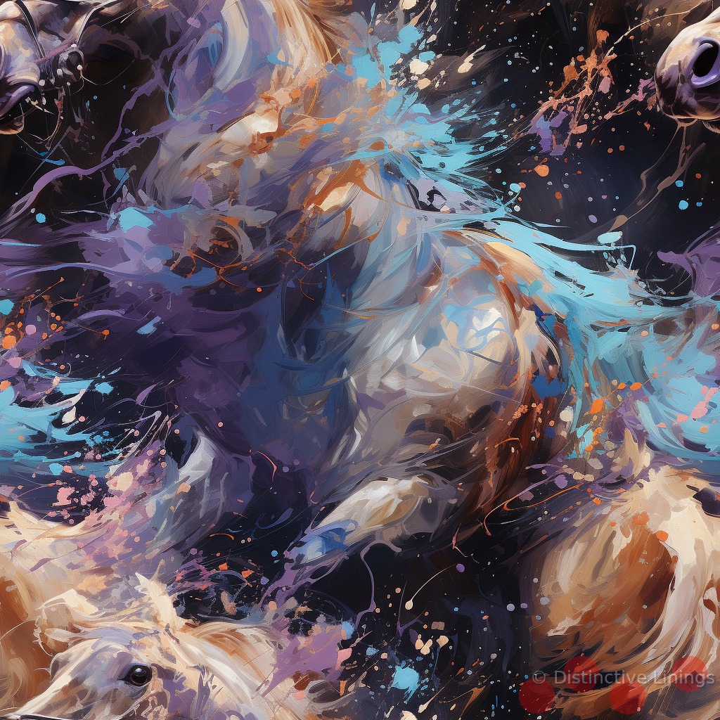 Welcome to the world of abstract sophistication. This exclusive jacket lining encapsulates the effervescent spirit of Expressionism, demonstrated through the dynamic visuals of a dancing horse.