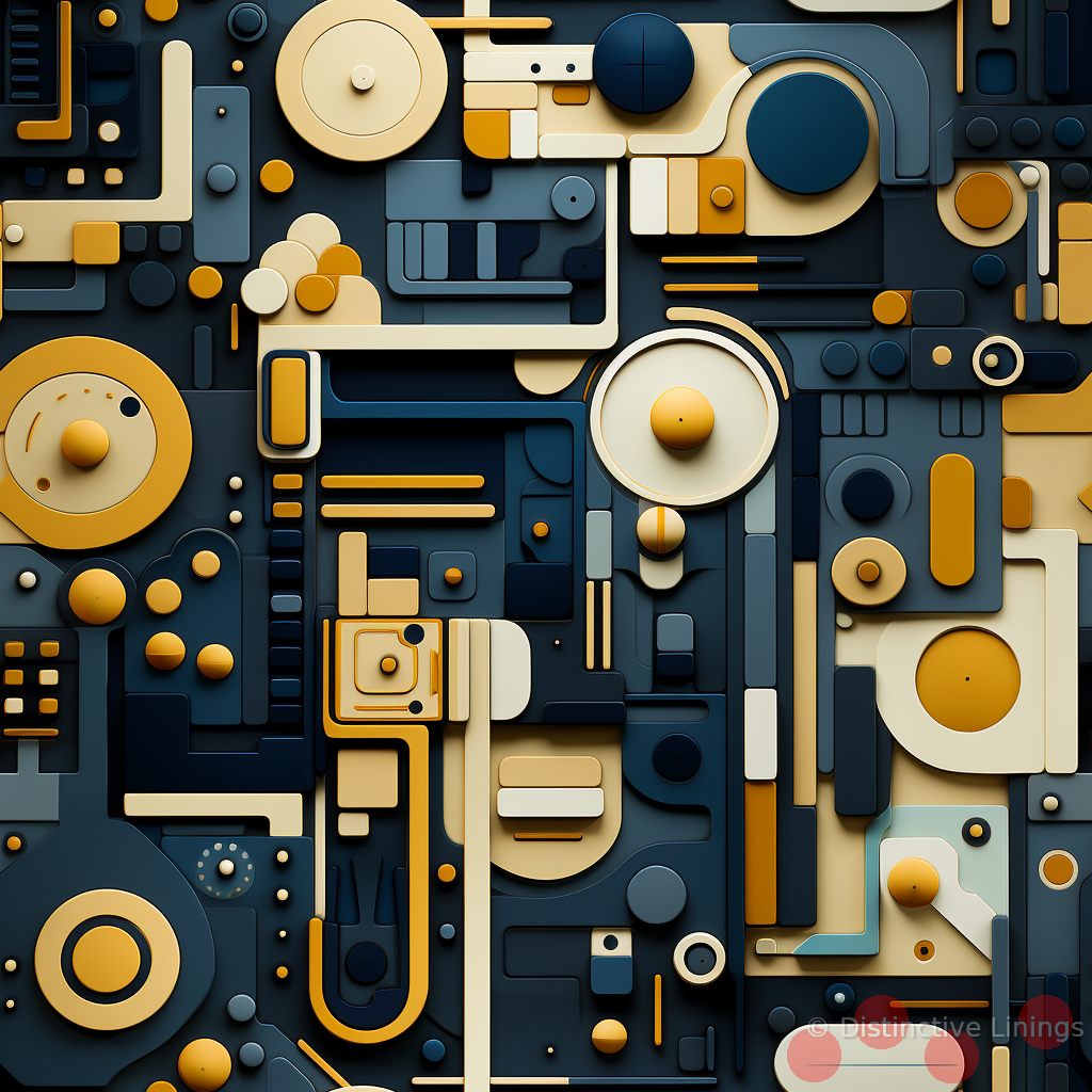 Adding a subtle spark, the light gold and dark azure intricate elements encompass the trim, culminating in a design that is as striking as it is sophisticated. A final splash of steelblue adds a contemporary edge to this high-end jacket lining, catering perfectly to the sartorially savvy individual who cherishes originality and exclusivity.