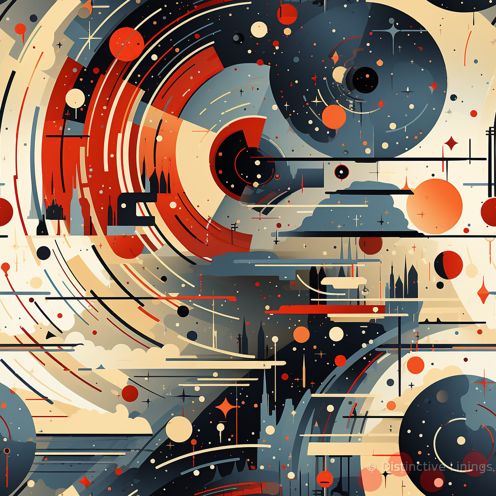 Stepping on the edge of celestial brilliance, this jacket lining carries a lucid spectacle of intergalactic scenery inspired by the realm of sci-fi fantasy. Dancing in the steel blue cosmic tapestry are vibrant bouts of wheat, darkslategray, and firebrick colors. These shades interweave in dramatic bold contrasts, creating an unmissable rhapsody of galaxies and distant planets. Wisps of dim gray add depth to the view, simulating far-reaching cosmic dust and asteroid fields.