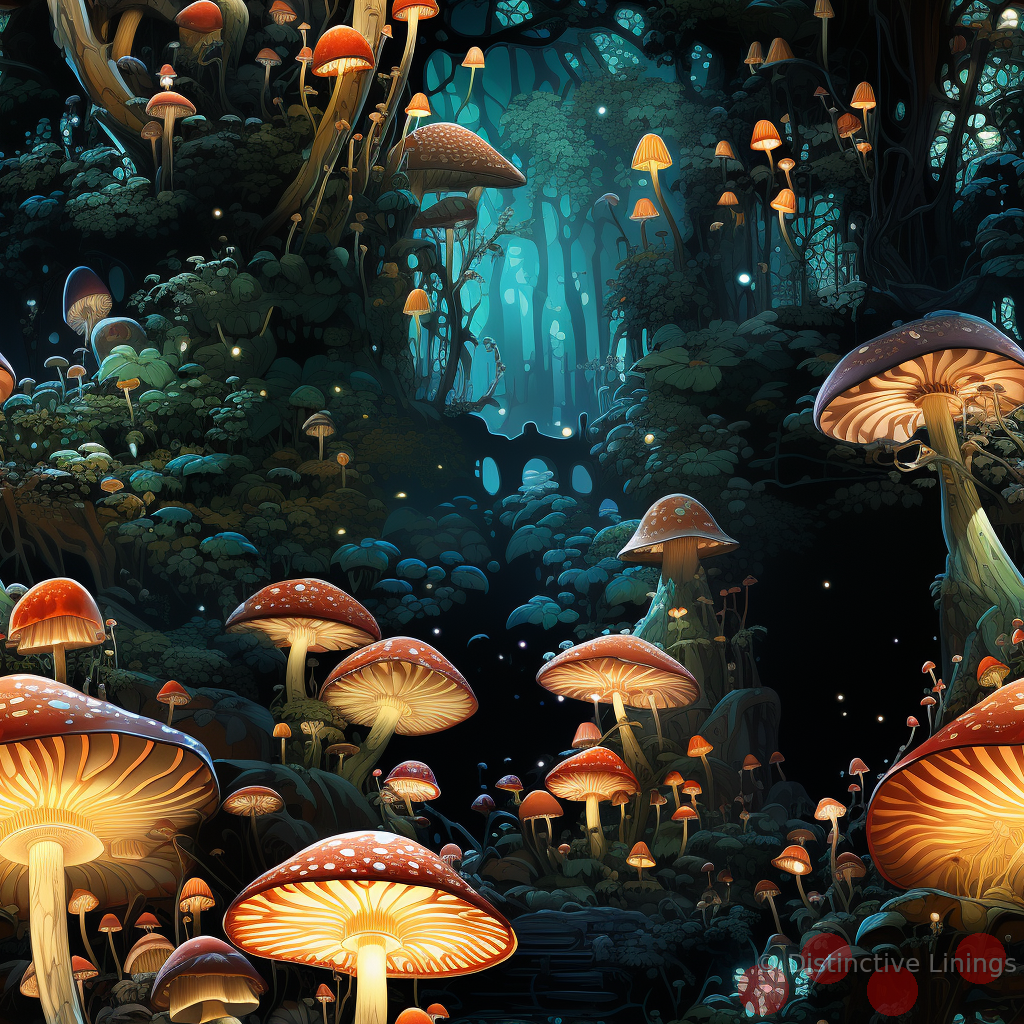 Immerse yourself in a dreamscape uniquely inspired by groundbreaking Japanese animation with this exclusive jacket lining. Create a statement with the shadows intricately painted in a deep black, which beautifully offset the earthy peru tones of fantastical giant mushrooms. The animation style garden teems with vibrant splashes of lightseagreen and seagreen hues, elevating the lifelike ambience of this mesmerizing piece. Notice the brilliant speckles of steel blue detailing adding an exquisite depth to the illustration, enhancing the richness of the lining's design. This customized piece plays homage to elements of dramatic flights of fancy, skillfully crafted for a truly personalized piece.