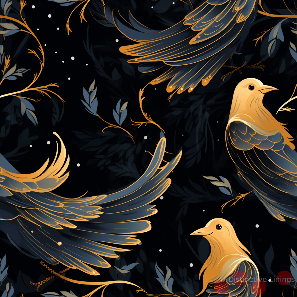 Unveil your unique style with this jacket lining design that exudes a serene touch of expressionism, reminiscent of chirping birds on a golden day. This mosaic of colors is a subset of sophistication, blending earthy peru generously with muted tones of black, dimgray, and slategray, striking against a balanced gray canvas. The lavish depiction of tranquil nature, combined with a distinctly artistic approach, positions this spectacular lining as the mark of tailored elegance.