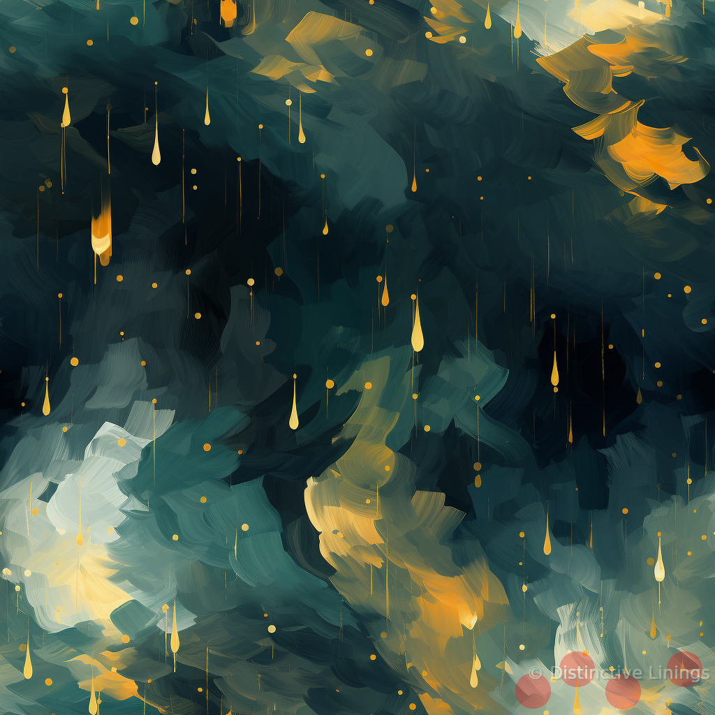 Immerse yourself in the poetic drama captured in this exclusive jacket lining. The design encapsulates the enigmatic beauty of Illuminated Nights, painted with blurry brushstrokes that recall the mystical allure of a forest in the heart of the night. The color palette is a sophisticated mix of dark slate gray, dark khaki, dim gray, light slate gray, and cadet blue; a true echo of nocturnal elegance. These are not just colors but a symphony of night hues, drawing you into its depth. Tailored to your uniqueness, this lining infuses a touch of personal style and discrete brilliance to your custom-made jacket.