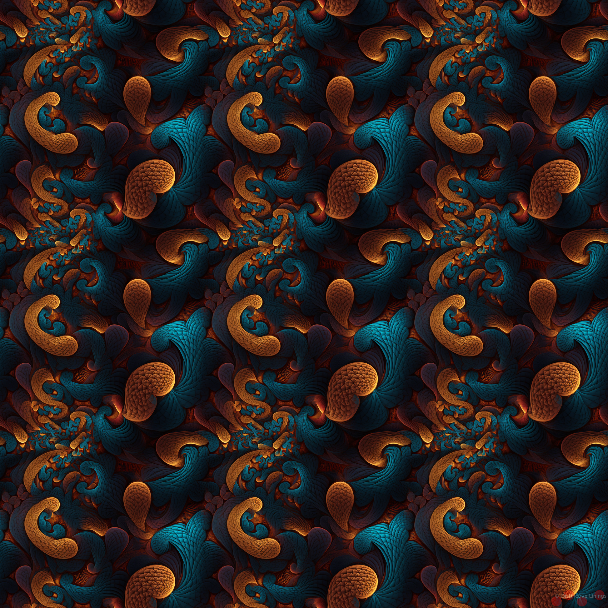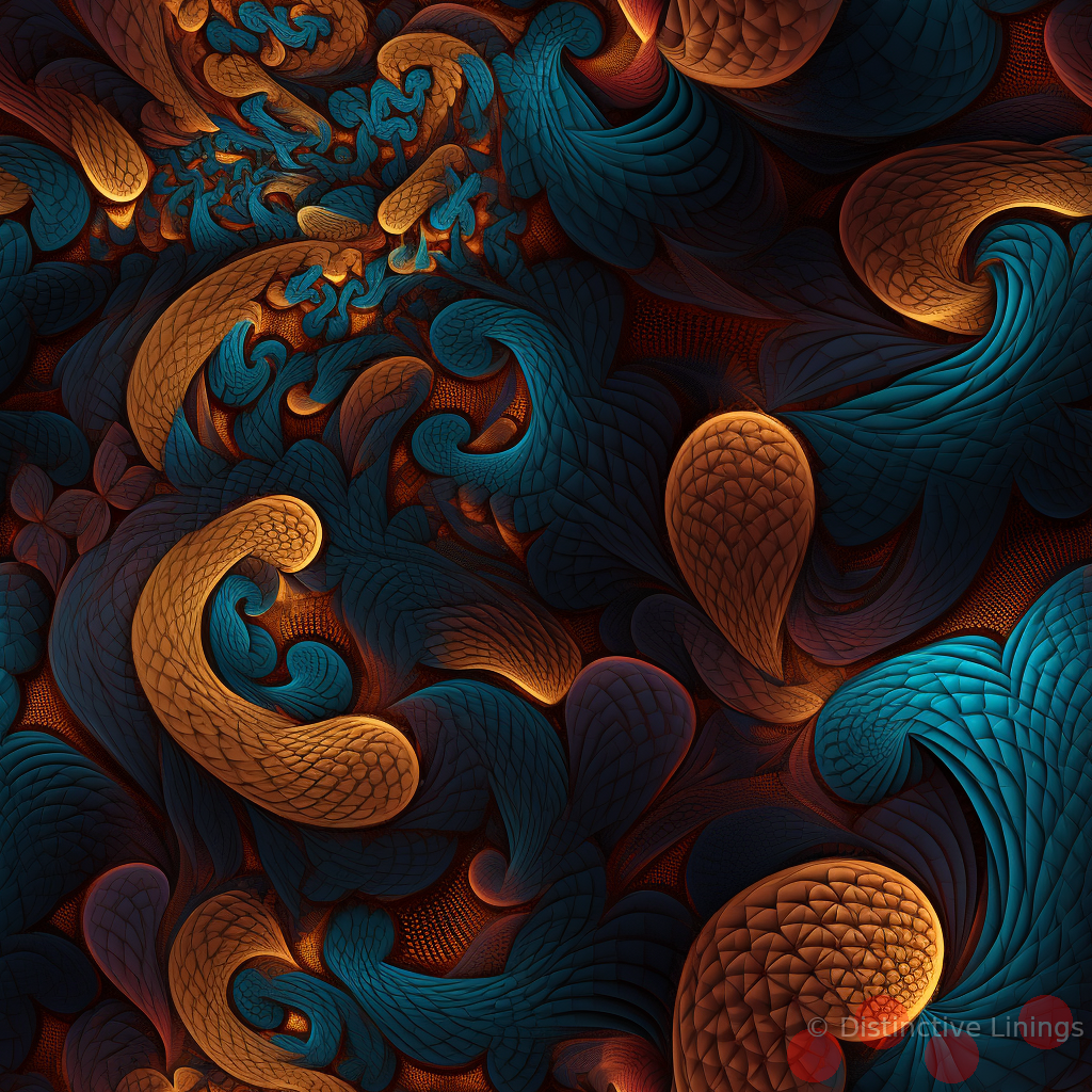 Delve into a world of illusion and science fiction with this exclusive jacket lining design. Representing a beautiful dance of colors, a symphony of `black`, `sienna`, `saddlebrown`, `darkcyan` and `slategray` tones sweep across the lining in a visionary spectacle synonymous with sci-fi imagery. The balance of these colors is reminiscent of the unfathomable depths of a cosmos free from human touch.