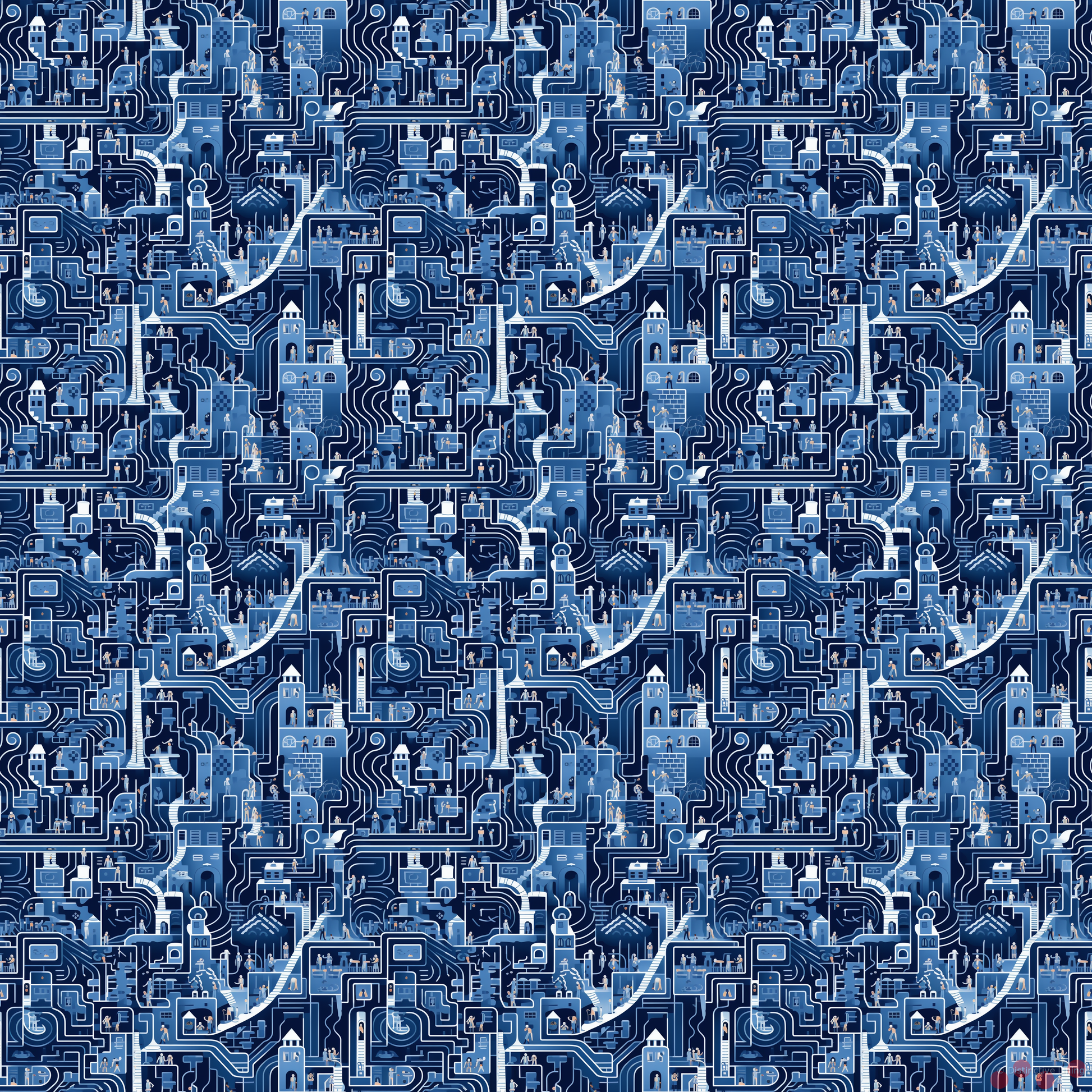 A muted backdrop of Gainsboro allows for the labyrinth pattern to take centre stage - its interlocking depths are brought to life through an intense use of Midnight Blue. This strong foundation is tinged with the subtle-masculine accents of Steel Blue, repeated in varying gradients to add an alluring complexity to the overall design.