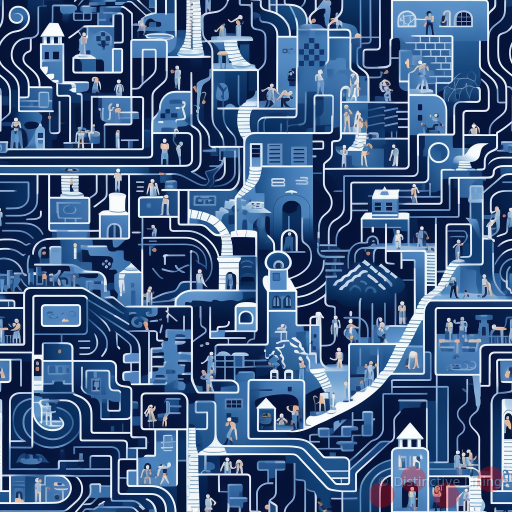 Breathing life into the intricate maze is the gentle touch of Cornflower Blue, delicately woven in-between the darker hues. This soft illuminating shade serves as the perfect contrast, enhancing the depth of the design and the richness of darker hues.