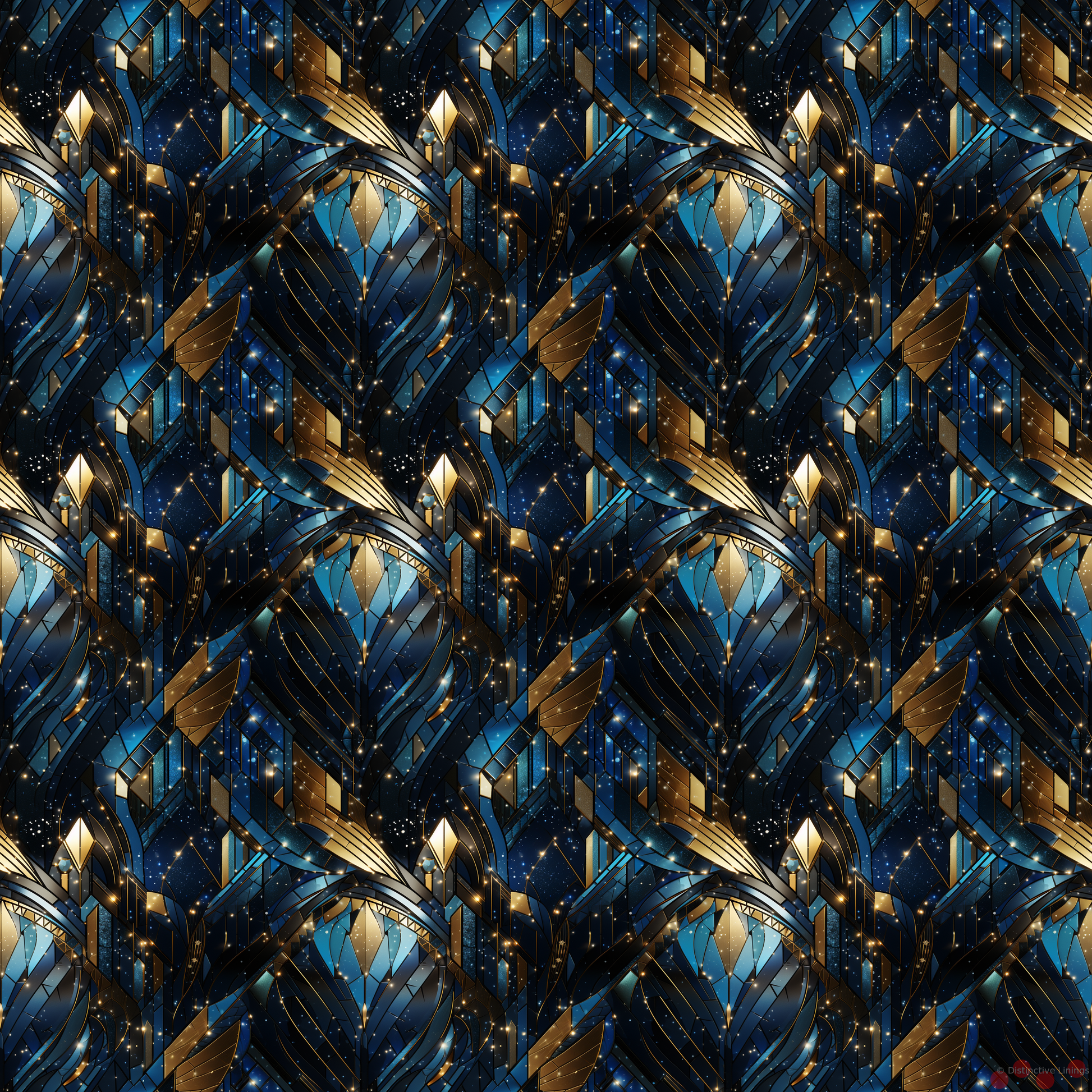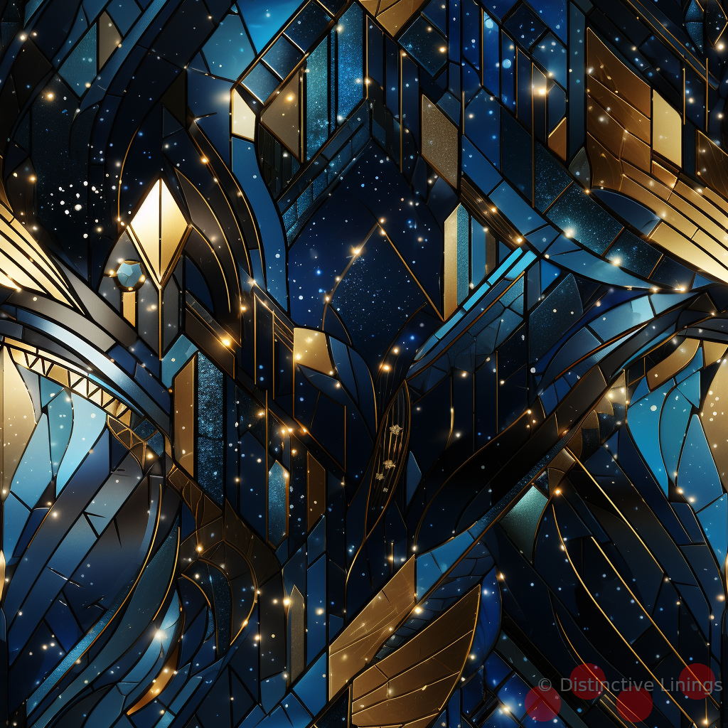 Step into the style of Jazz Age realism with this unique jacket lining. Radiating royal blue and brilliant gold to make a dazzling impression, this lining marries the elegant contrasts of the time with modern aesthetics.