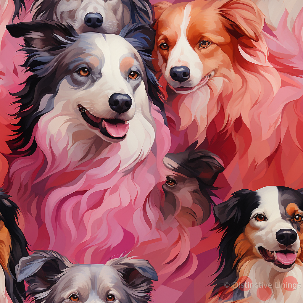 The intriguing depiction of dogs comes alive in a mix of invigorating stadium cherry red contrasted against stark black, muted light gray, earthy brown, and shimmering silver. The clever interplay of colors blends to create a visually captivating lining that's anything but ordinary.