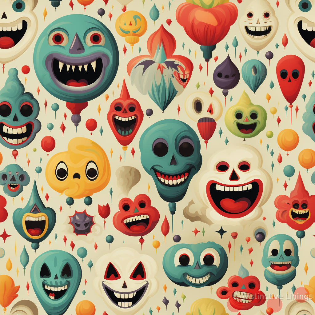 Indulge in the world of modernistic art with our exclusive jacket lining. This beguiling design, inspired by the style of visually stimulating children's book illustrations, takes you on a whimsical trip to a realm belonging purely to the imagination. The unusual vibrance of a mirthful carnival parade of killer clowns is captured meticulously in every detail, invoking associations with laughter, festivity, and intrigue.
