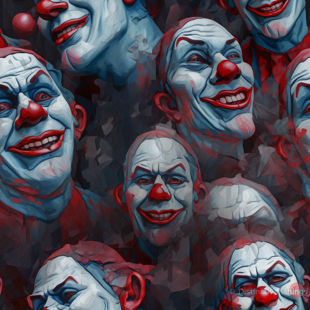An intriguing kaleidoscope of dark slate gray, silver, dark gray, sienna and light slate gray create an incredible depth and complexity to the design. The captivating motif, inspired by the unconventional theme of 'killer clowns', offers a touch of eccentricity and flair to your custom-made jackets.