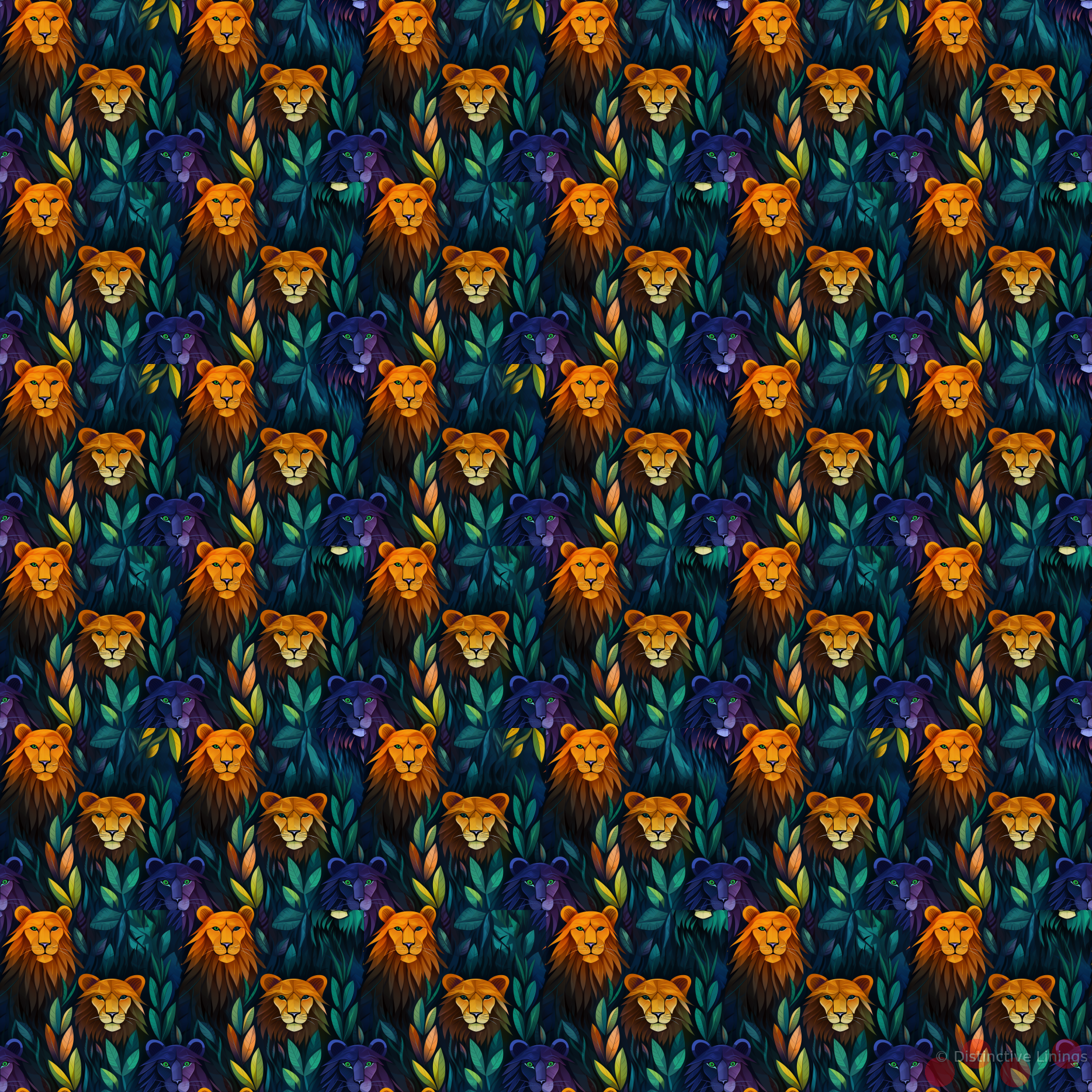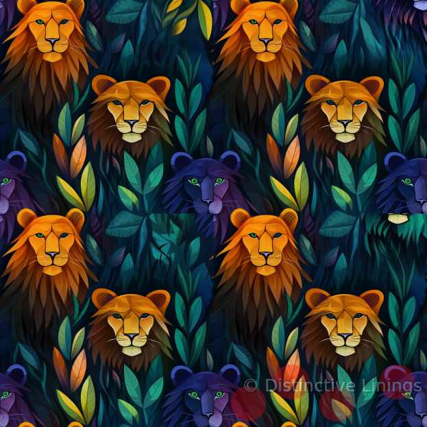 Tales of the jungle are elegantly illustrated in chocolate and black, effectively highlighting the noble strength of lions. The subtlety of saddlebrown in the print is balanced by hints of seagreen and dark slate blue, a surprising palette that exudes uniqueness.