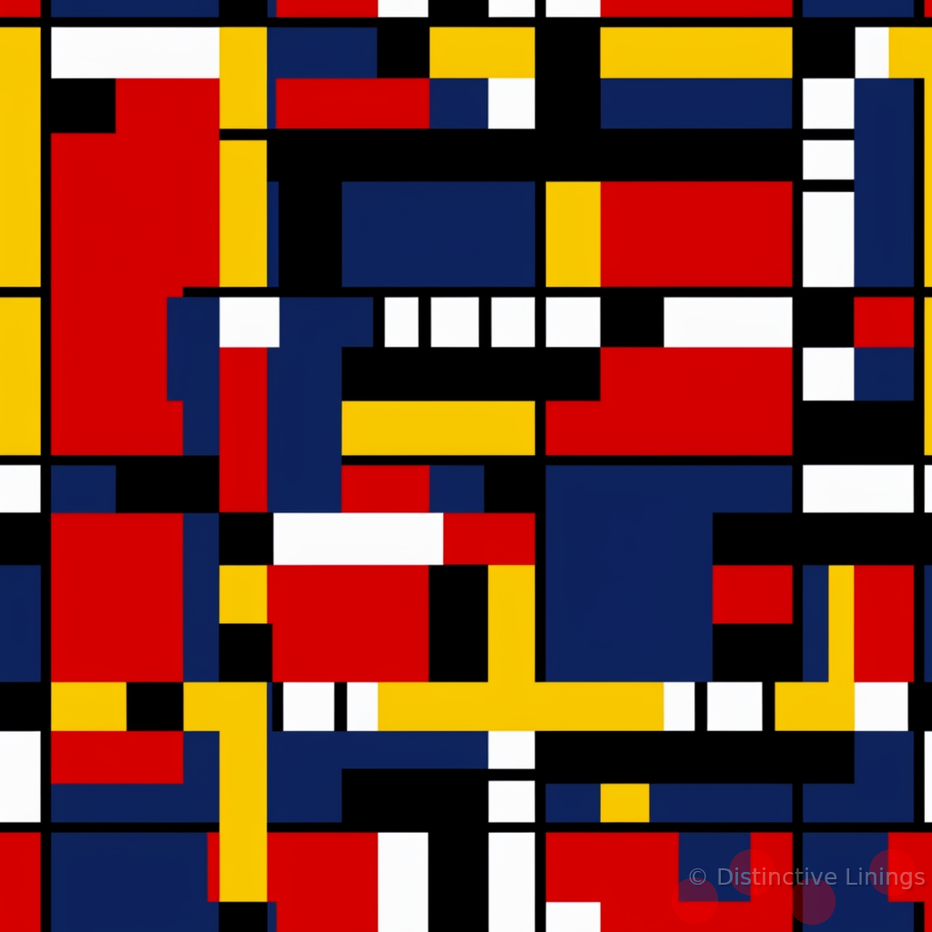 The stark contrast and difference in strokes reflects the balance and harmony, characteristic of De Stijl. Add an edge to your sartorial choices and set a bold statement with this distinctive De Stijl patterned jacket lining, where true craftsmanship meets high art.
