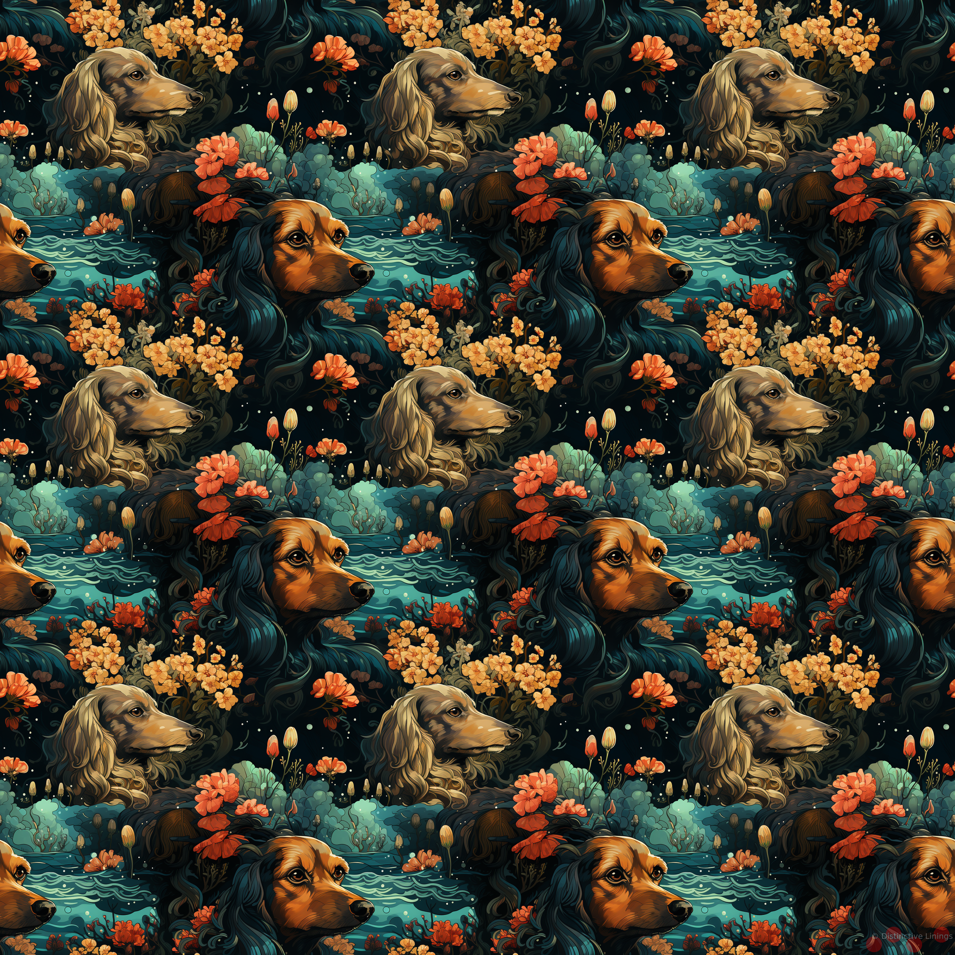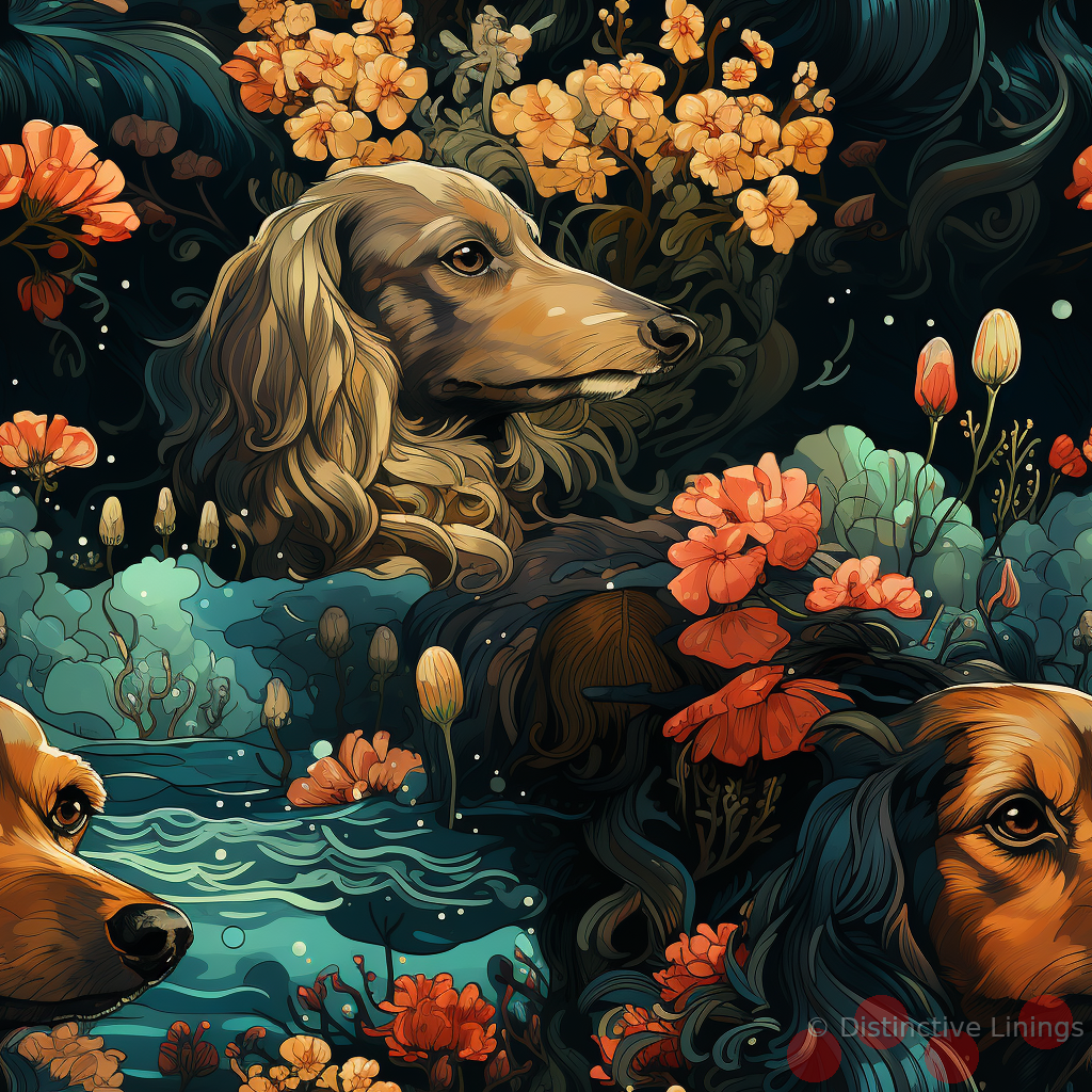 A canvas fused with elements of teal and coral from a dachshund-inspired narrative, it beautifully melds the warm earth tones with cool subtle undertones. This personalized element of your jacket allows for a unique addition to your sartorial ensemble, highlighting not just individuality, but a keen admiration for nuanced aesthetics.