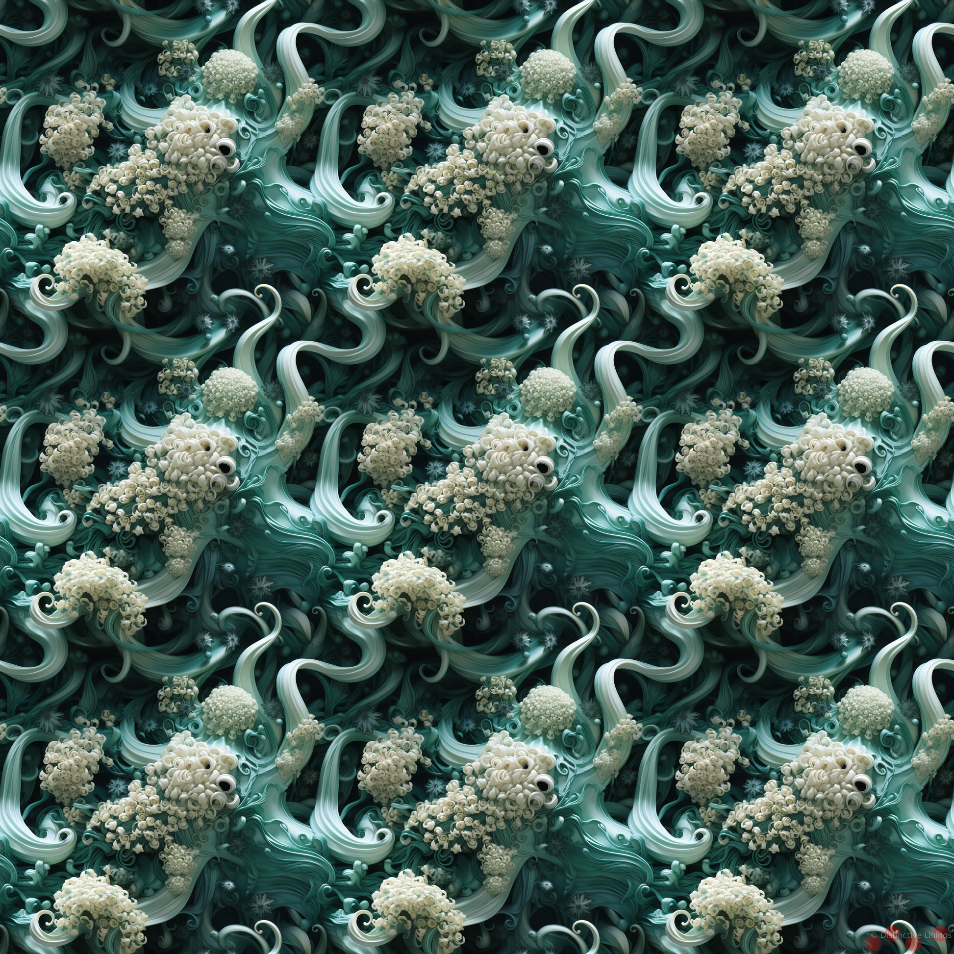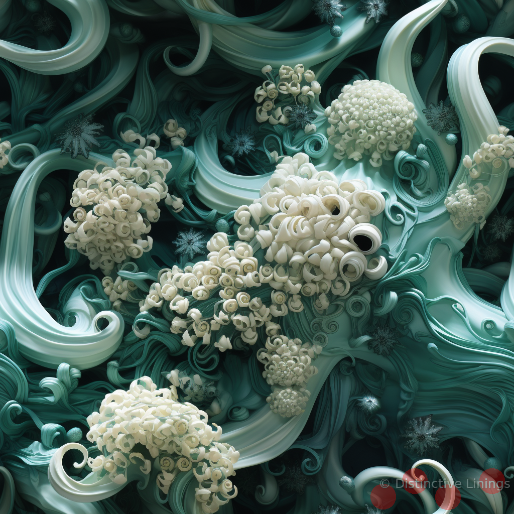 Immerse yourself in aquatic harmony with this exclusive jacket liner, designed in a modernist style often associated with Georgia O'Keefe. Dive into the depth of its darkslategray, a shade reminiscent of the deepest ocean, only broken by playful inclusions of silver and gray, that bring forth images of soft sea foam and smooth pebbles. The lining reveals a touch of natural zen, a nod to its modernist influence, in the calming accents of darkseagreen and cadetblue. This one-of-a-kind liner boasts an octopus motif, a creature known for its adaptability and vividness. Tailored exclusively for those who seek a truly unique and customized experience, this liner breathes life into any custom-made jackets, and marks the wearer as someone who dares to differ.