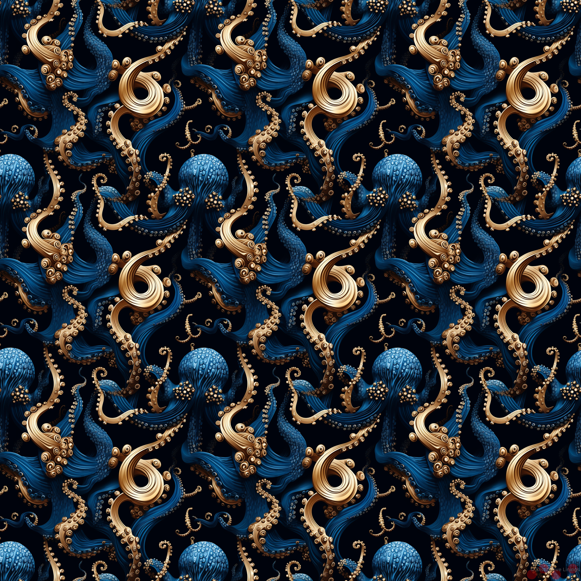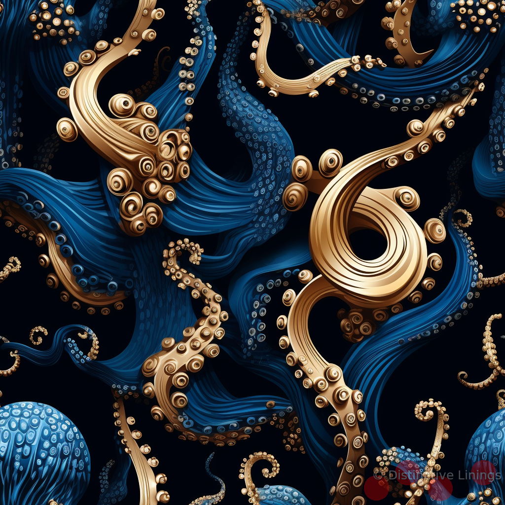 Get lost in the mesmerizing visual masterpiece of our exclusive jacket lining. Inspired by the contemporary art style, the design features an intricate octopus motif. Light gold shimmers through, akin to the treasure hidden deep within ocean's grasp. The overall color palette brilliantly combines an earthy tan with tones of black, evoking the mystery and allure of the deep sea.