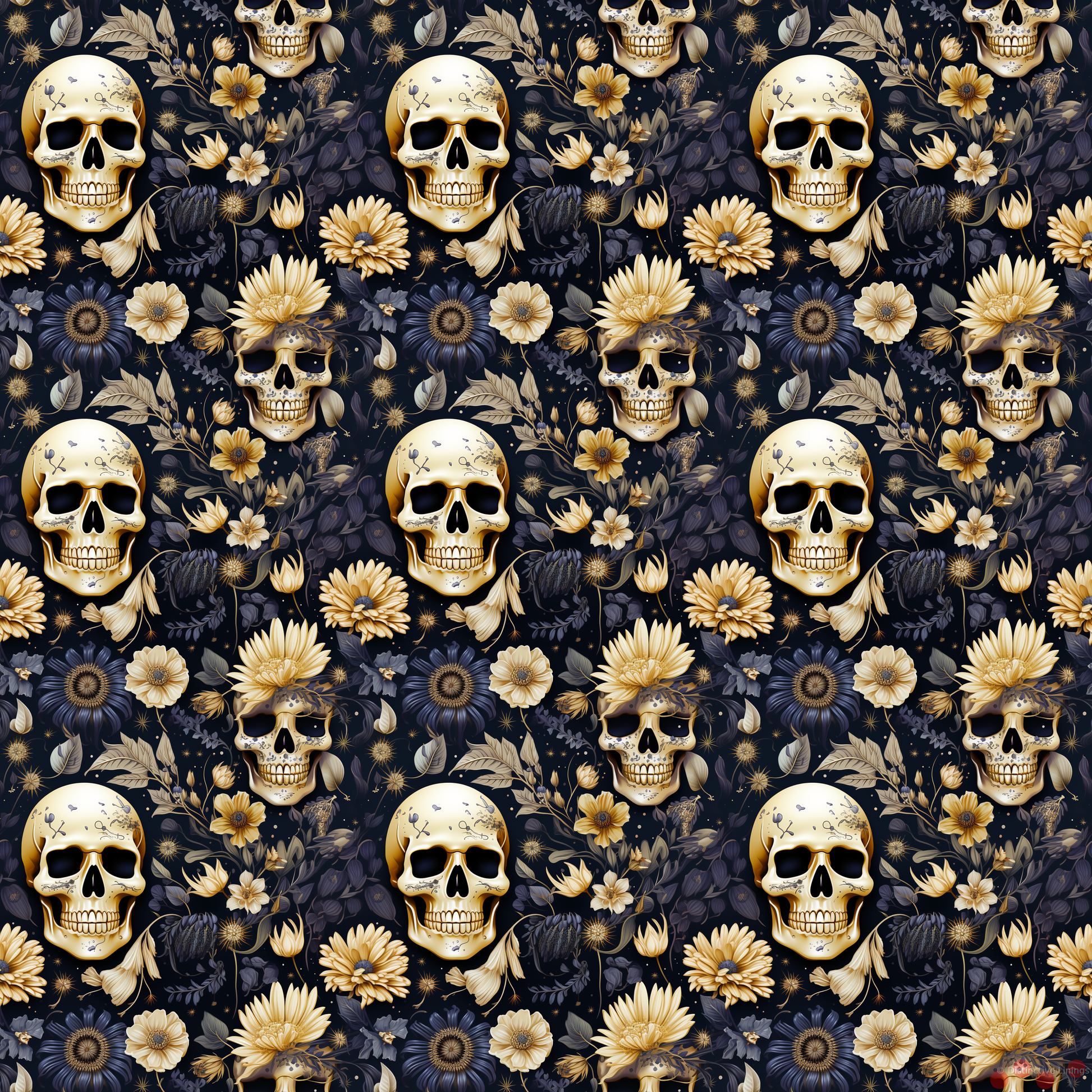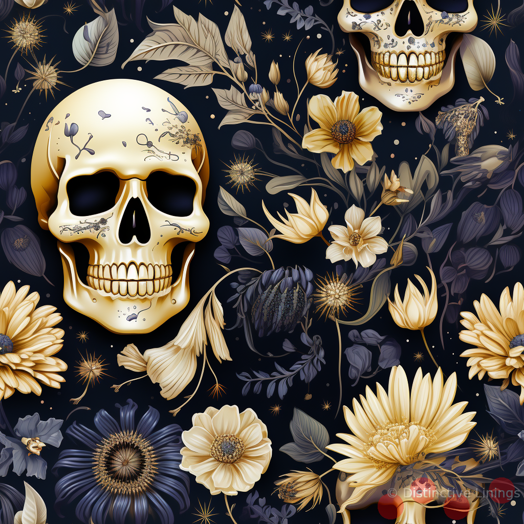 The design showcases whimsical skulls meticulously arranged, depicting inspiration from the illustrious world of pop art. It presents a paradoxical connection of liveliness cushioned amidst the profound theme of skulls, thereby embossing an everlasting impression.