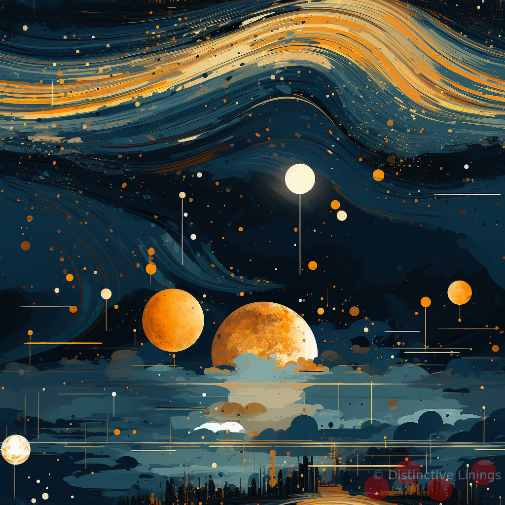 Immerse yourself in the universe of custom jackets with this exclusive lining design. Drawing inspiration from the abstractionism movement, the design expresses the depth and mystery of the Retrograde Planets with a tasteful blend of rich colors.