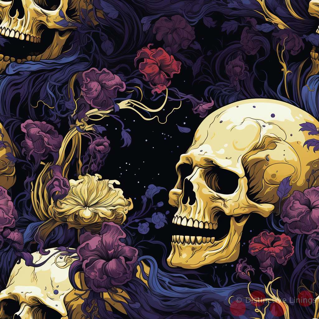 Immerse yourself in the creative blend of audacious street and pop art style with this eye-catching jacket lining. The scheme poised with intriguing shades of burlywood, black, dimgray, darkslateblue, and gray paints a canvas that inspires individuality. True to the chaotic yet captivating spirit of the urban art scene, the dominant theme features an eclectic array of skulls.