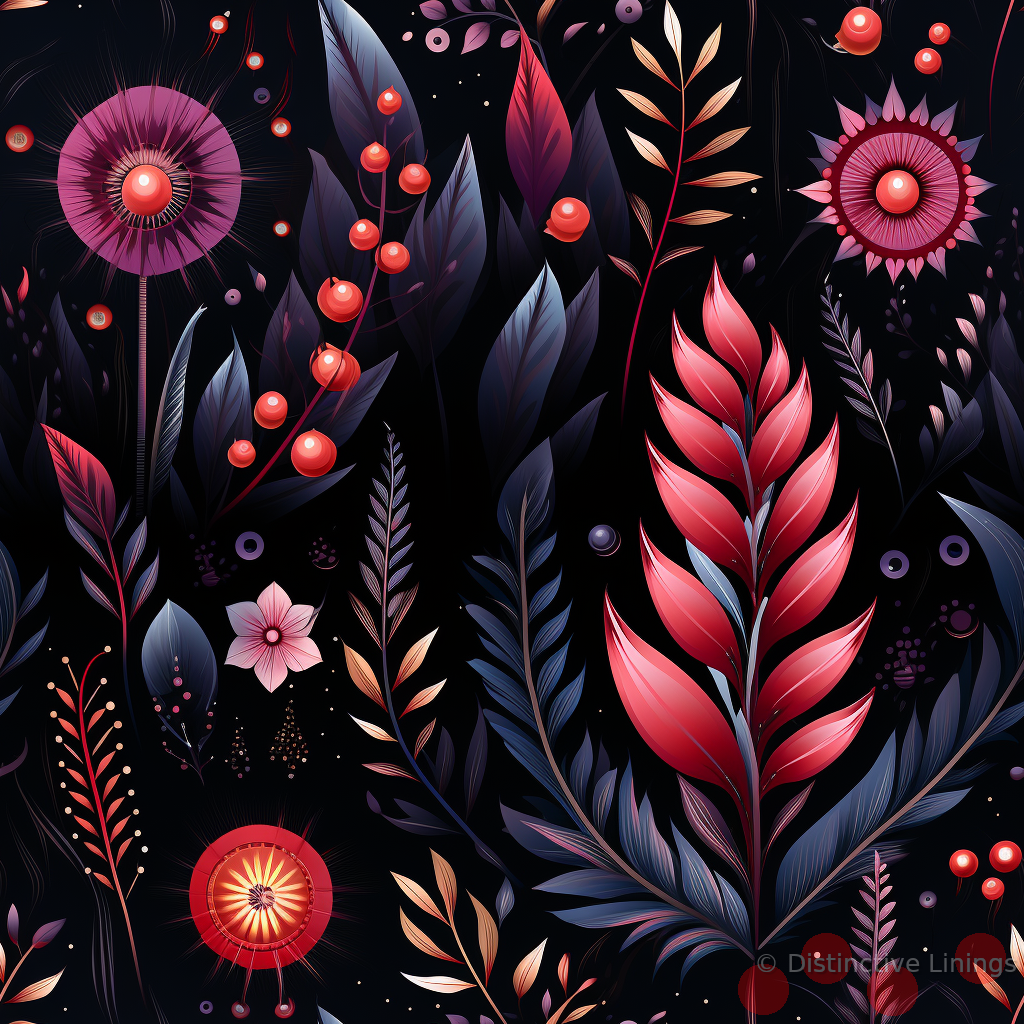 Immerse yourself in a fusion of Tribal and CottageCore style with this exclusive jacket lining. The prominent hues of indian red, slate gray, light slate gray, and dark slate gray dance in harmony across the dark canvas, invoking an aura of subtle warmth and elegance. The deep, black undertones balance the vibrance, offering an appealing contrast. The rich and captivating tribal patterns seamlessly blend with the simplicity of CottageCore aesthetics, giving structure yet retaining an essence of whimsy. This exquisitely detailed design is sure to elevate your custom, made to measure jacket, adding a unique touch of personality to your style. Escape the mundane and embrace the charm of this exclusive design, a true celebration of individuality and artistic expression.