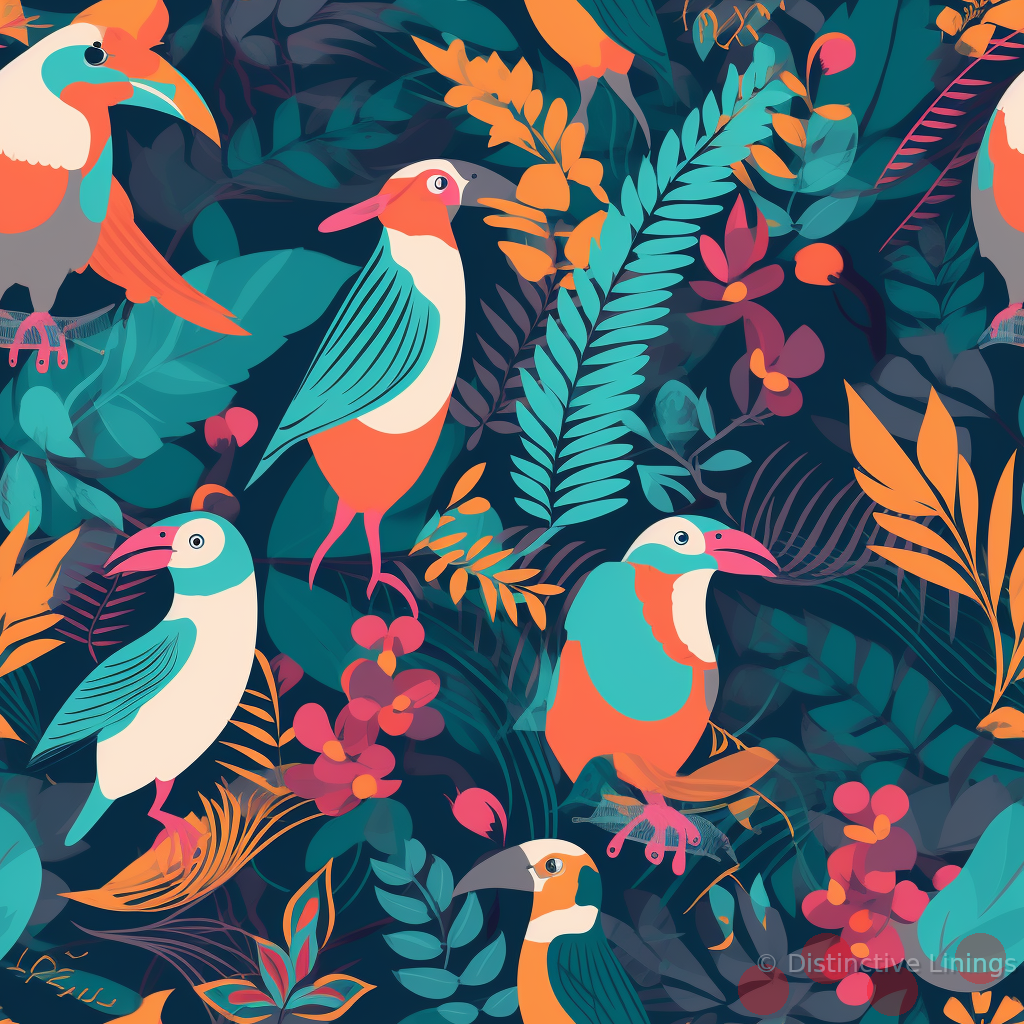 Be enchanted by the precision and creativity invested in this magnificent jacket lining design. A tropical paradise, it brandishes an artful blend of darkslategray, salmon, lightseagreen, and steelblue hues presenting an eloquent story. The profusion of verdant foliages amalgamates with aviary life that immerses one in a vacation-inspired scenery. This powerful representation brings a sense of infinite summer and exotic getaways. It's perfect for those individuals who like to keep their style vibrant, bold, but tastefully sophisticated. Custom-made and tailored to fit seamlessly, this lining elevates any jacket design into a piece of art.