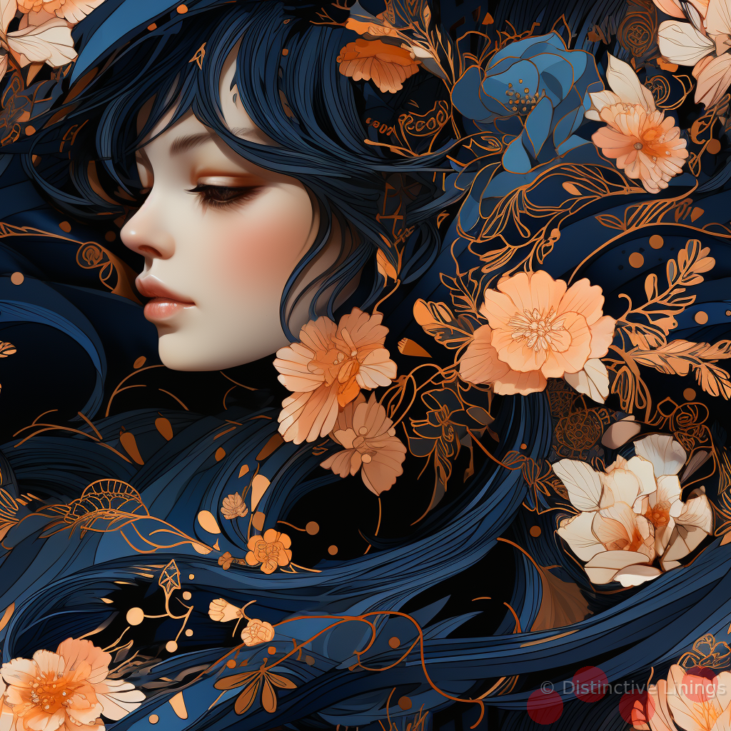 Presenting a seamless fusion of color and art. This jacket lining showcases a distinctive outsider art style print, capturing the enigmatic allure of Midnight Blue and the heartwarming tint of Peach. The dominant shades are an ethereal dance of Darksalmon and the deep void of Black, bewitchingly juxaposed with speckles of earthy Saddlebrown.