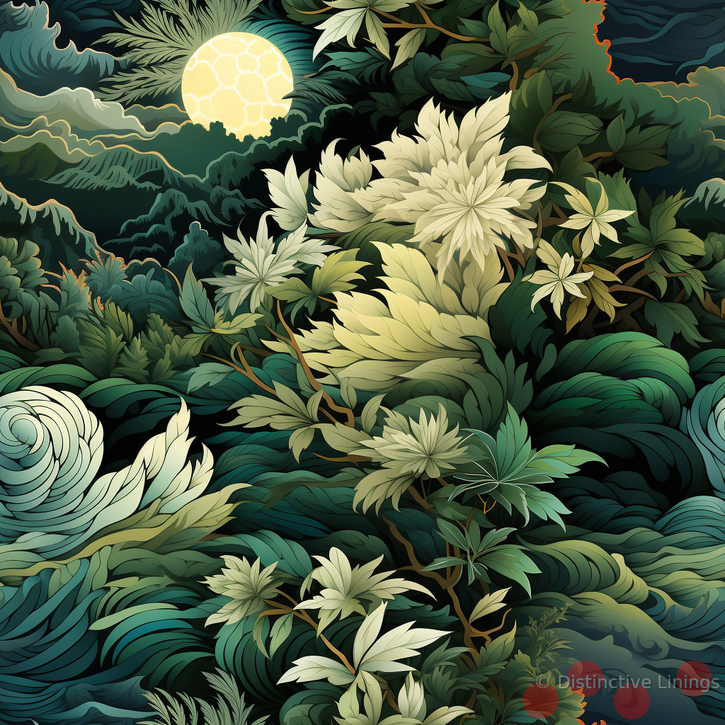Dive into the enchanting world of Post-Impressionist art with this unique jacket lining. This compelling design blends the natural motif of marijuana leaves recreated in the symbolic style that echoes the distinctive brushstrokes of late 19th-century Post-Impressionism. Swirling patterns of darkslategray, tan, dimgray, darkseagreen and cadetblue combine to form a mesmerizing aesthetics that is sure to catch an eye. This lining is an exquisite way to bring depth and individuality to your made-to-measure jacket, capturing a sense of aesthetic refinement and passion for unique expressions of style.