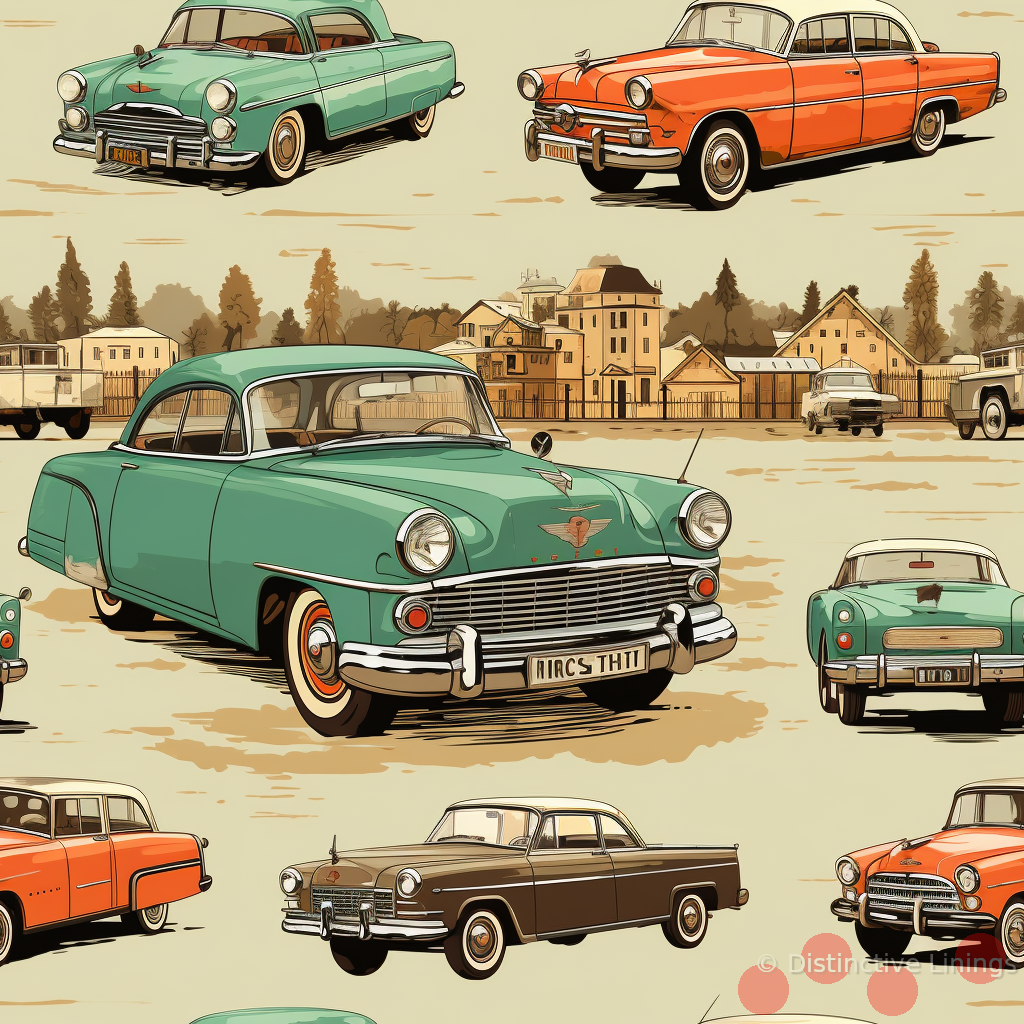 Emanating the signature street culture inspired neo-expressionist stroke, this jacket lining design features an avant-garde merge of vintage vehicles in a palette delicate as palegoldenrod and robust as darslategray. It infuses a momentous vestige of color charm with indulgent strokes of sienna and peru, further accentuated by the subtle infusions of darkkhaki. A captivating visual ensemble for anyone seeking a touch of unconventional artistry and bold sophistication in their custom-made jacket.