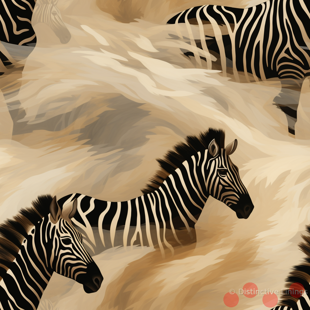 Experience an extraordinary fusion of art and fashion with this exclusive jacket lining. Infused with the quintessential elements of contemporary realism, it channels the striking patterns of the wild zebra in a symphony of beige and dark brown. The lining's design is an intricate juxtaposition of tan, black, dimgray, sienna, and dark olive green shades. This distinct combination of colors adds to the rich textures, exuding an aesthetic that is both modern and timeless. Ideal for the unique and uncompromising individual, this lining will add an artistic touch to your custom, made to measure jacket.